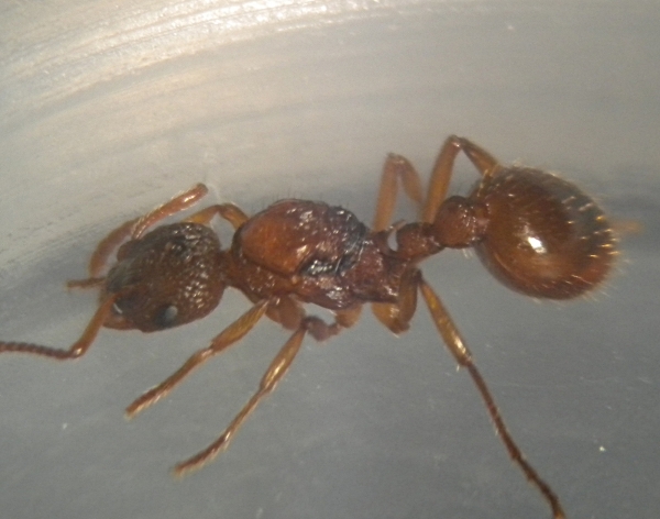 für Alle, die über Weihnachten Langeweile haben (grins), habe ich gestern Abend bei 2°C (und verher eine Woche lang Dauerfrost) an einer kleinen Gartenmauer in Deggendorf diese Ameise aufgelesen. Lässt sich die anhand der schlechten Fotos bestimmen? Und gibt's 'ne Erklärung dafür, warum die im Winter draussen rumkriecht?