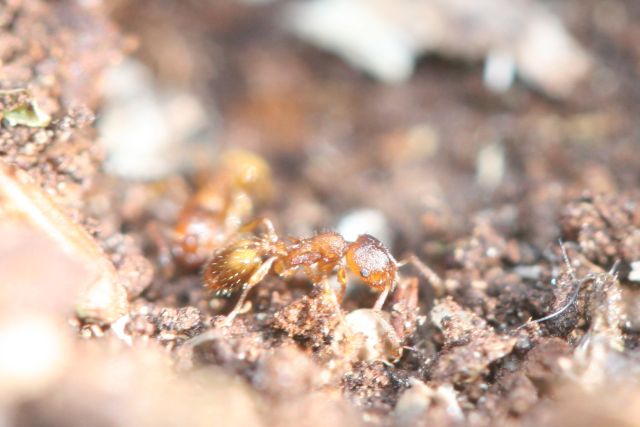 Ich vermute eine Temnothorax sp., die Größenangabe macht mich aber unsicher. Da wären 2-3 mm angebracht.