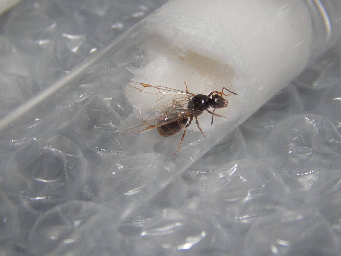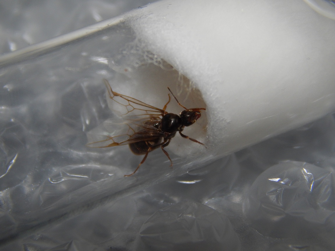 Dann habe ich eine eingefangen. Sie saß 2 Tage in einer Brotdose bis ich ein Reagenzglas besorgt hatte. Als ich Sie dort reinsetzte ging Sie sofort ans Wasser. Seitdem ist nichts passiert. Flügel sind noch dran. Ich glaube es sind nun insgesamt 5 Tage vergangen.