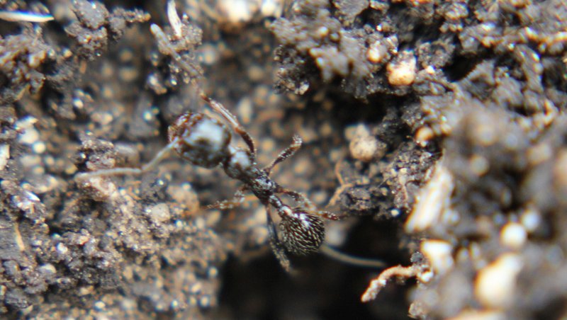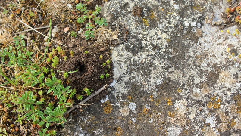 Generell: auf einer Fläche von ca. 150 mal 300 Meter habe ich nach ca. 160 Nestbauten bzw. Auswürfen aufgehört zu zählen - und das nur beim lockeren Durchgehen und Schauen auf den paar Trampelpfaden, was sich daneben im Gras und zwischen den Steinen so tut, kann ich nicht mal sagen. Sie scheinen die ganze Anhöhe im großen Maßstab zu besiedeln, egal wo ich rum gestapft bin dort - überall lässt sich recht flott Eines entdecken.