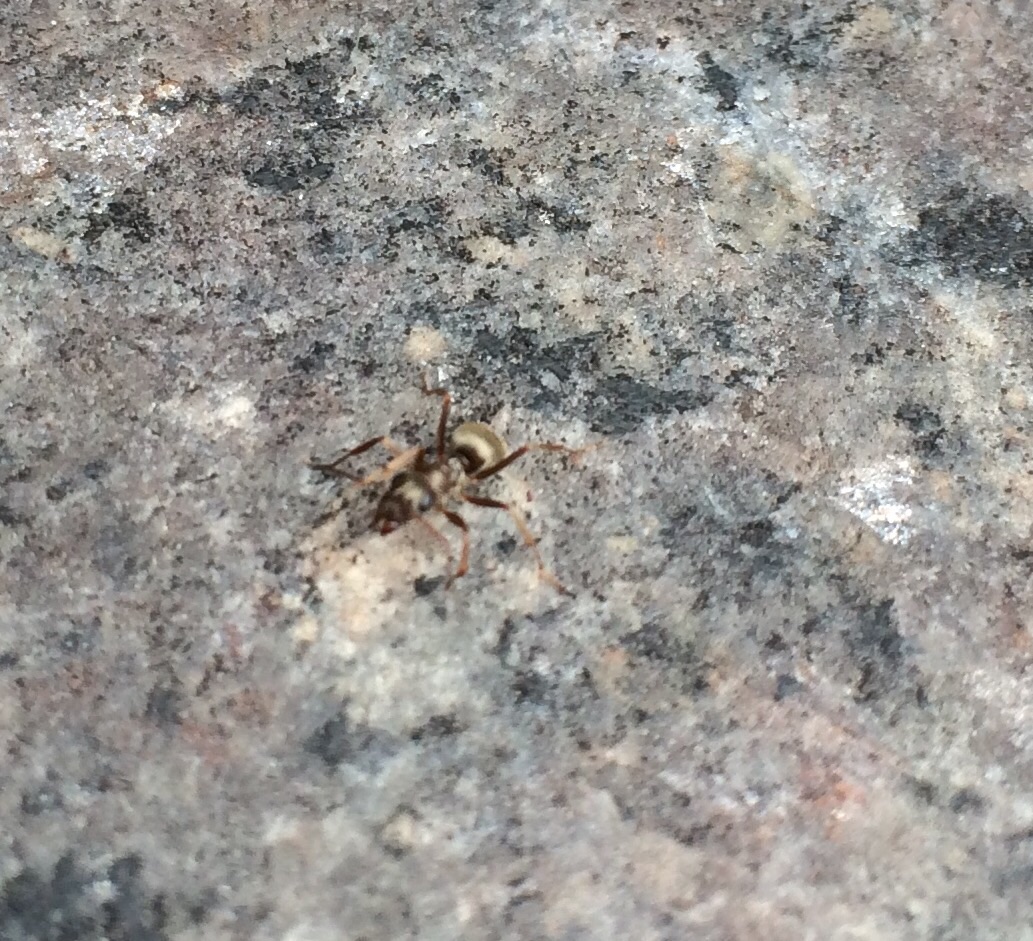 Neben mir krabbeln diese außerordentlich hĂŒbschen Tierchen. Ich vermute Soldatinnen - Körper brĂ€unlich bis schwarz,gold glĂ€nzend ca. 7mm. Die dazugehörigen Arbeiterinnen deutlich kleiner und nicht glĂ€nzend.