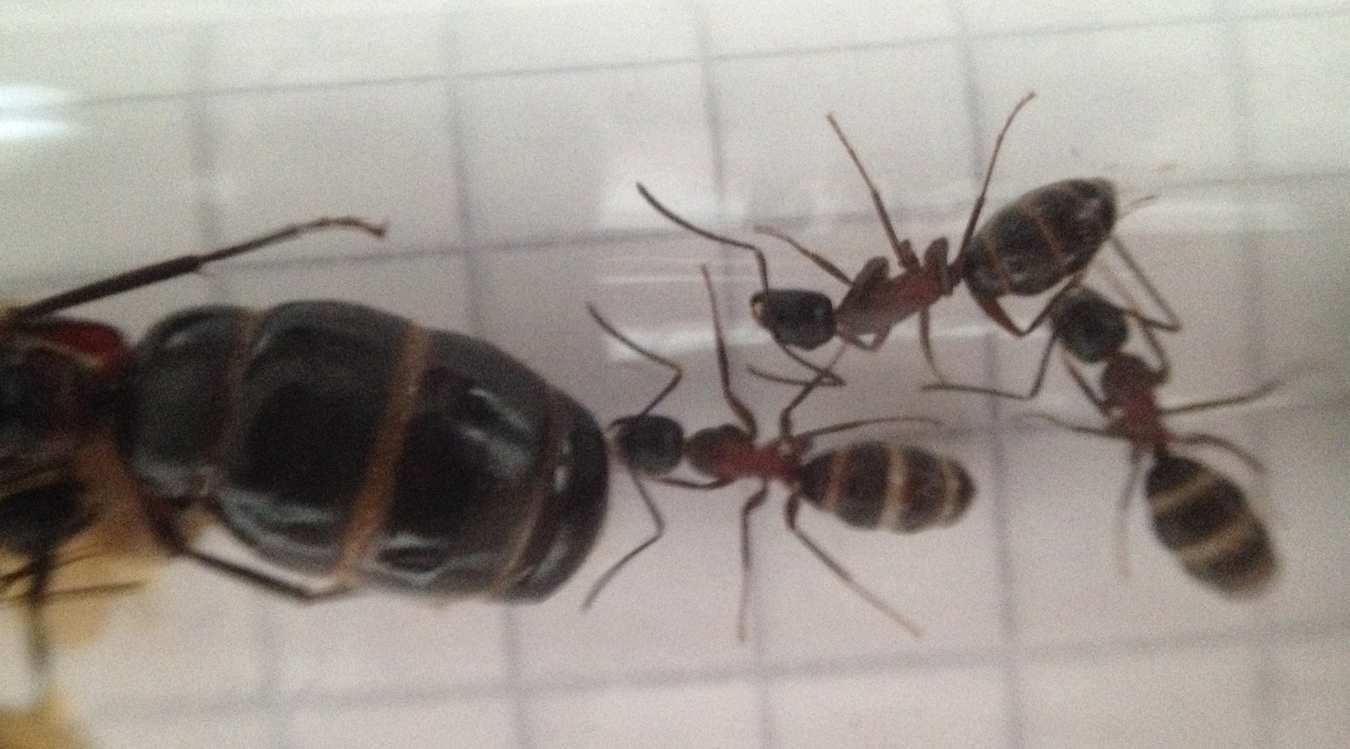 Zuallererst: So wie es aussieht, hatte Moudebouhou doch recht. Es ist wohl eine Camponotus herculeanus Königin, denn die Arbeiterinnen sind nicht komplett schwarz. Da habe ich wohl eine besonders dunkle Königin erwischt. :D
