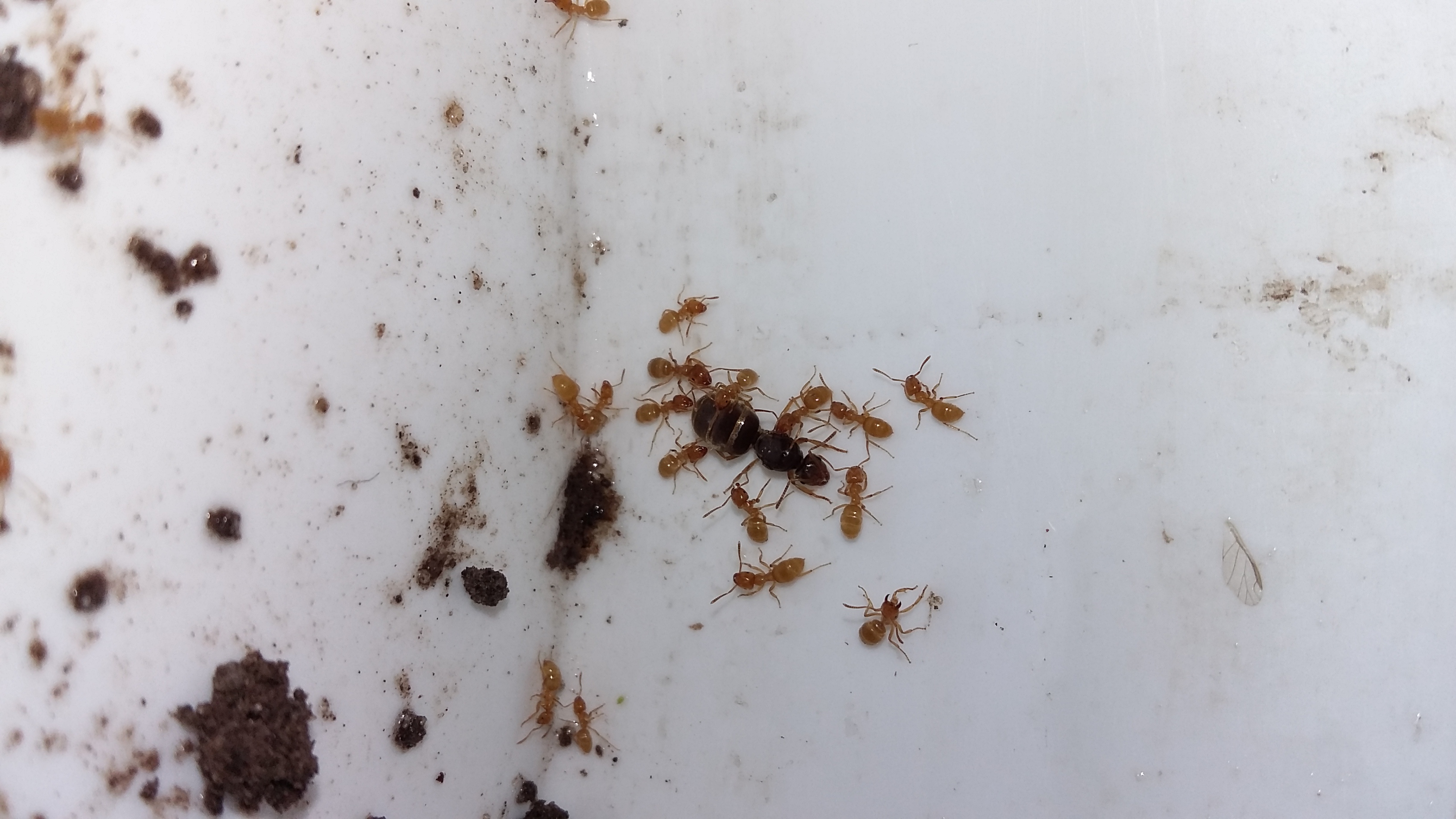 Die gröĂeren Arbeiterinnen kommen aber meist erst spĂ€ter vor, fĂŒr mich sieht es danach aus als wĂ€re dies nur ein kleiner Teil der Kolonie. Vor allem sollten sie sehr viel