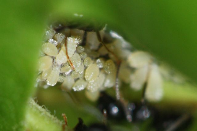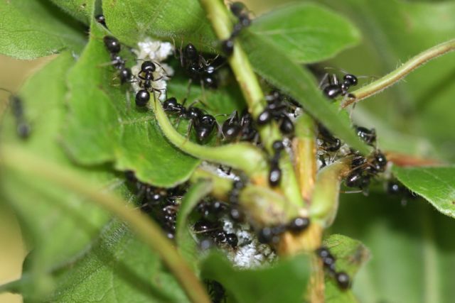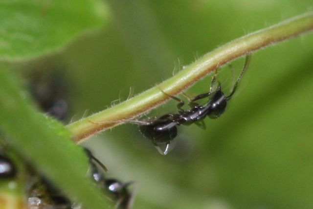 Bei den abgebildeten Ameisen handelt es sich um Lasius (Dendrolasius) fuliginosus.
