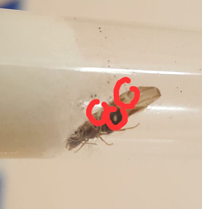 Nach zwei Tagen ruhe schaute ich erneut ins RG und musste zu meinem Enttäuschen feststellen das die Flügel immer noch dran waren. Schlussfolgernd entschloss ich sie heute, mit Reagenzglas, hier auf dem Gartentisch, wieder frei zu lassen. Nach einpaar Stunden wollte ich gucken ob sie noch da war und entdeckte plötzlich eine kleine weiße Kugel. Natürlich habe ich sie danach wieder reingeholt.