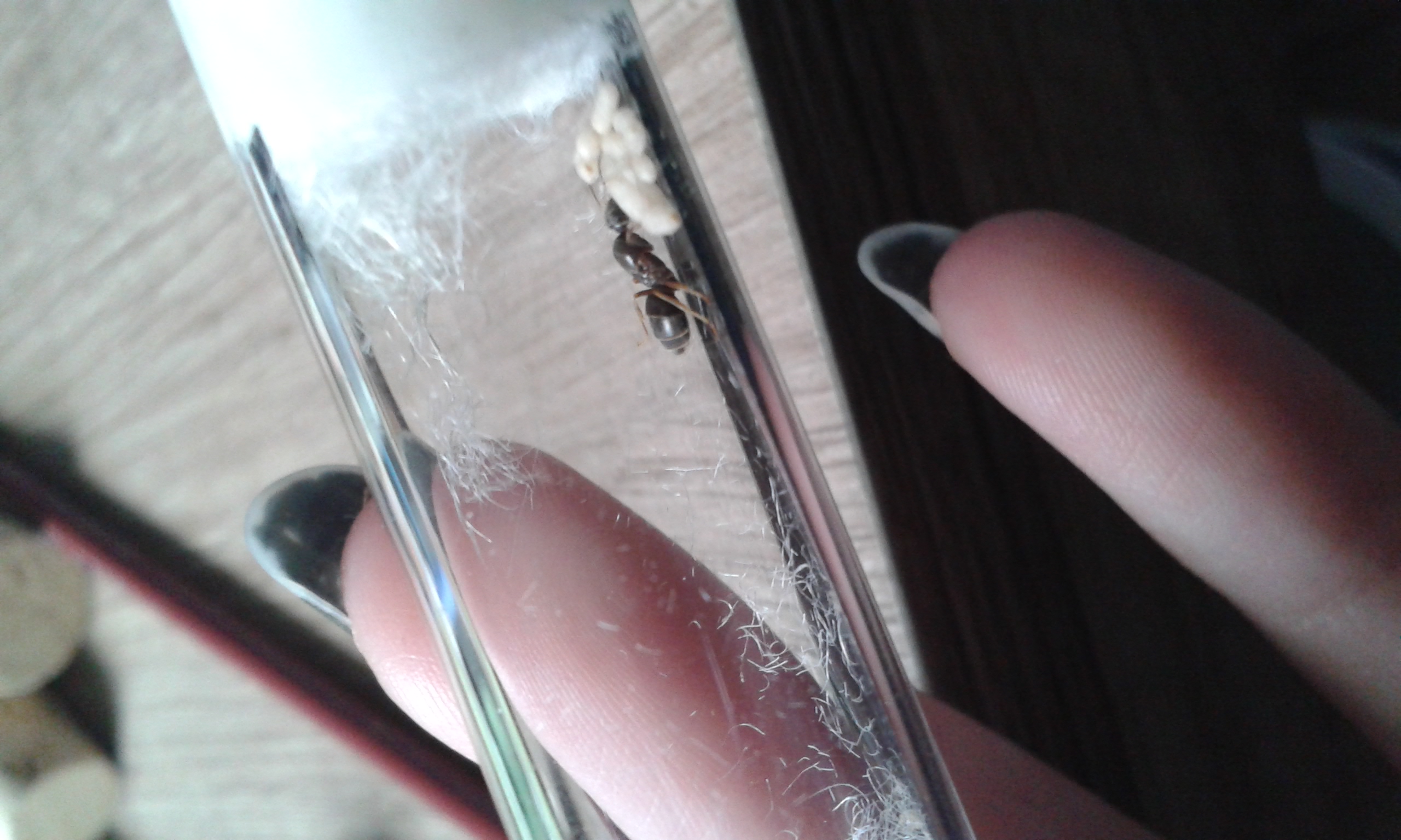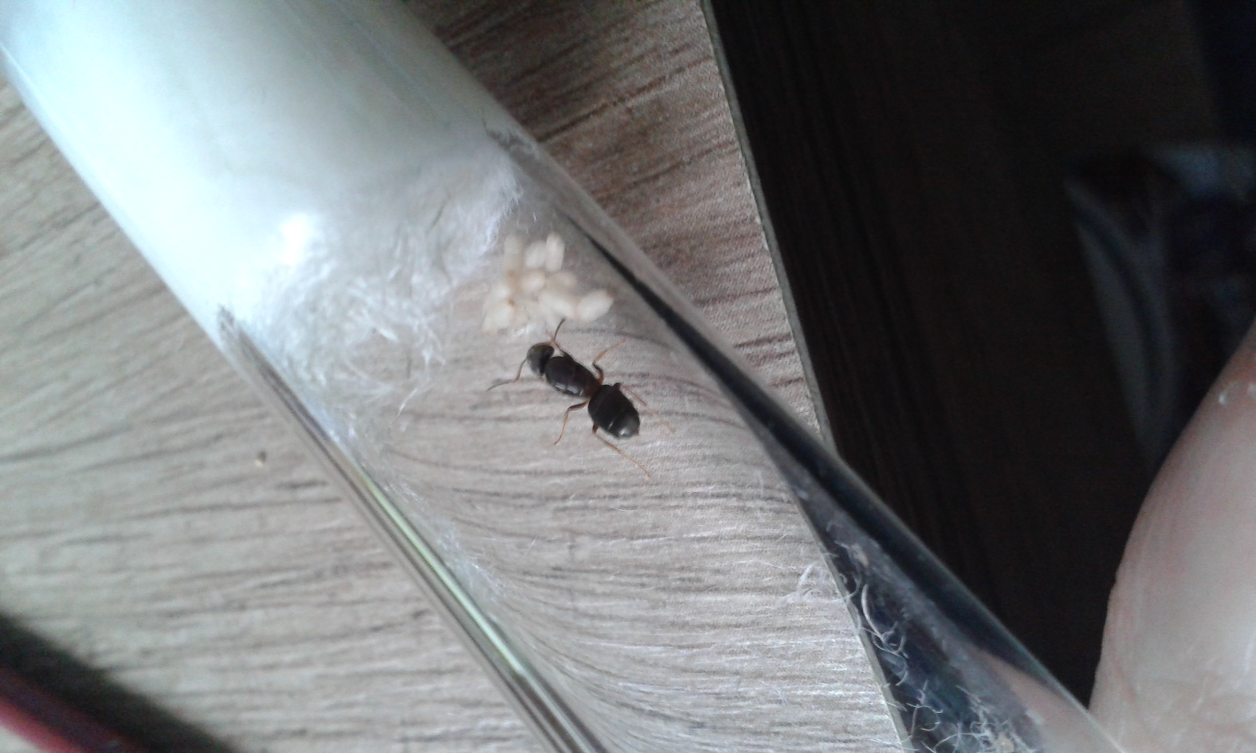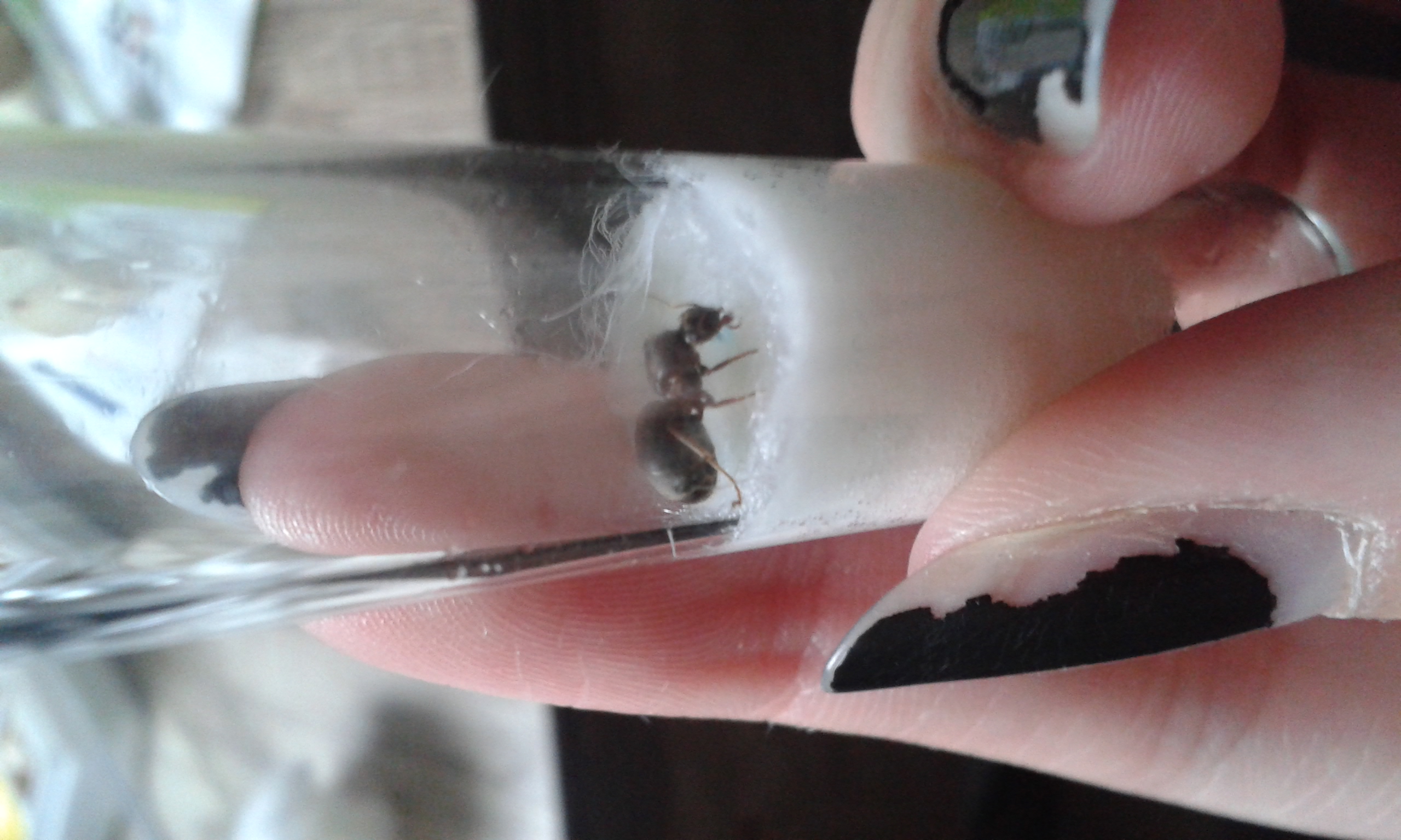 Bei der dritten ist es nicht ganz so einfach. Sind die dort zu sehenden Puppen ihre eigenen, oder hast Du die ihr hinzugegeben? Denn wenn es ihre eigene Brut ist könnte es sich hier um eine claustral gründende Lasius sp. handeln, deren Gaster durch die Gründung einfach schon etwas "sozialparasitär" aussieht.