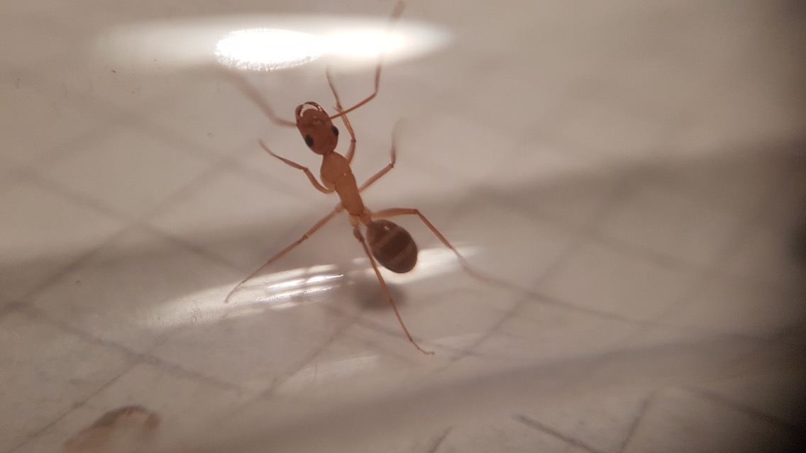 Brut herankommen und die Ameisen dadurch weniger gestresst sind, wenn es wieder mal Fütterungszeit ist. Im Anschluss habe ich auch noch eine Heizmatte installiert und die beiden Setups so positioniert, dass sie zur Hälfte auf der Heizmatte liegen. Dadurch entstehen Temperaturunterschiede im Nest und die Ameisen können wählen in welchem Bereich des Reagenzglases sie sich aufhalten. Tagsüber herrscht eine Temperatur von 27°C und nachtsüber ist es leicht kälter mit 22°C. Leider habe ich anfangs die Reagenzgläser mit dem Wassertankende auf die Heizmatte gelegt, was zu starken Verdunstungen und Kondensationen im Reagenzglas führte. Nachdem ich sie umgedreht hatte hat sich das Problem von selbst gelöst. Bevor ich jetzt detailliertere Informationen über die beiden Arten gebe, möchte ich noch kurz auflisten was ich ihnen füttere: