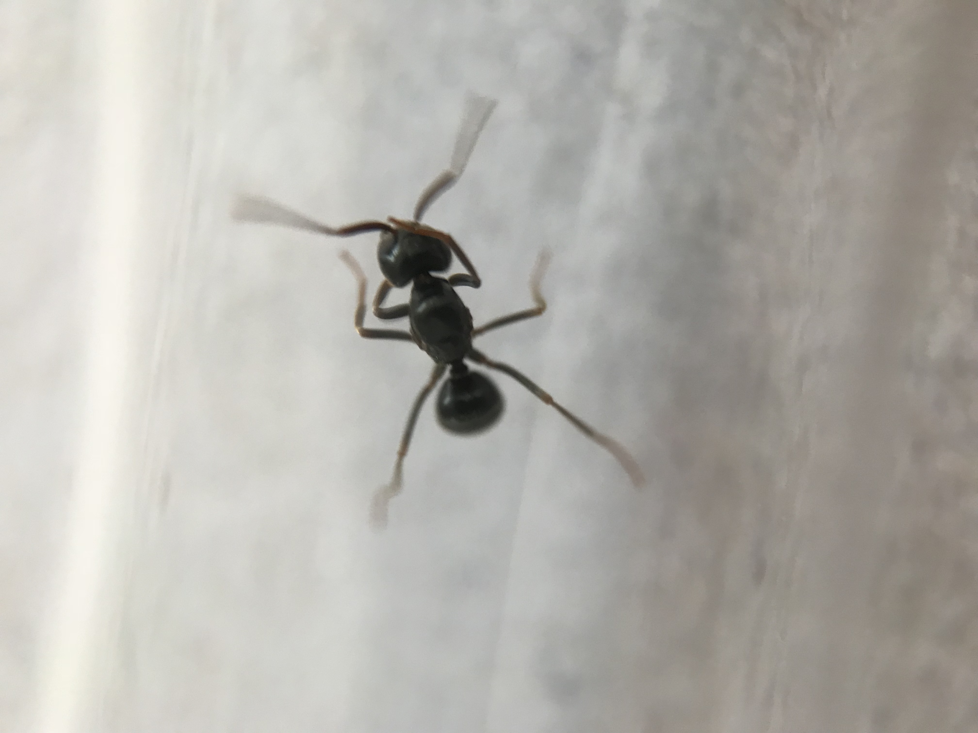 Die zweite Ameise ist eine Lasius fuliginosus Gyne. Diese Art grĂŒndet sozialparasitĂ€r bei weisellosen Chthonolasius Kolonien. Ohne eine entsprechende Wirtskolonie kann diese Art nicht grĂŒnden, weshalb man, wenn man keine hat, die Gynen wieder freilassen sollte.