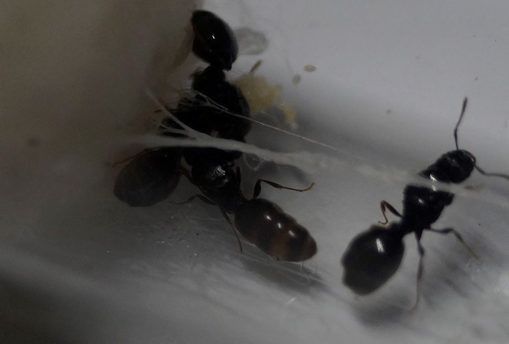 WĂ€re auch eher fĂŒr Tetramorium sp., meine auf einem Bild Propodealdornen erahnen zu können, was Solenopsis fugax ausschlieĂen wĂŒrde.