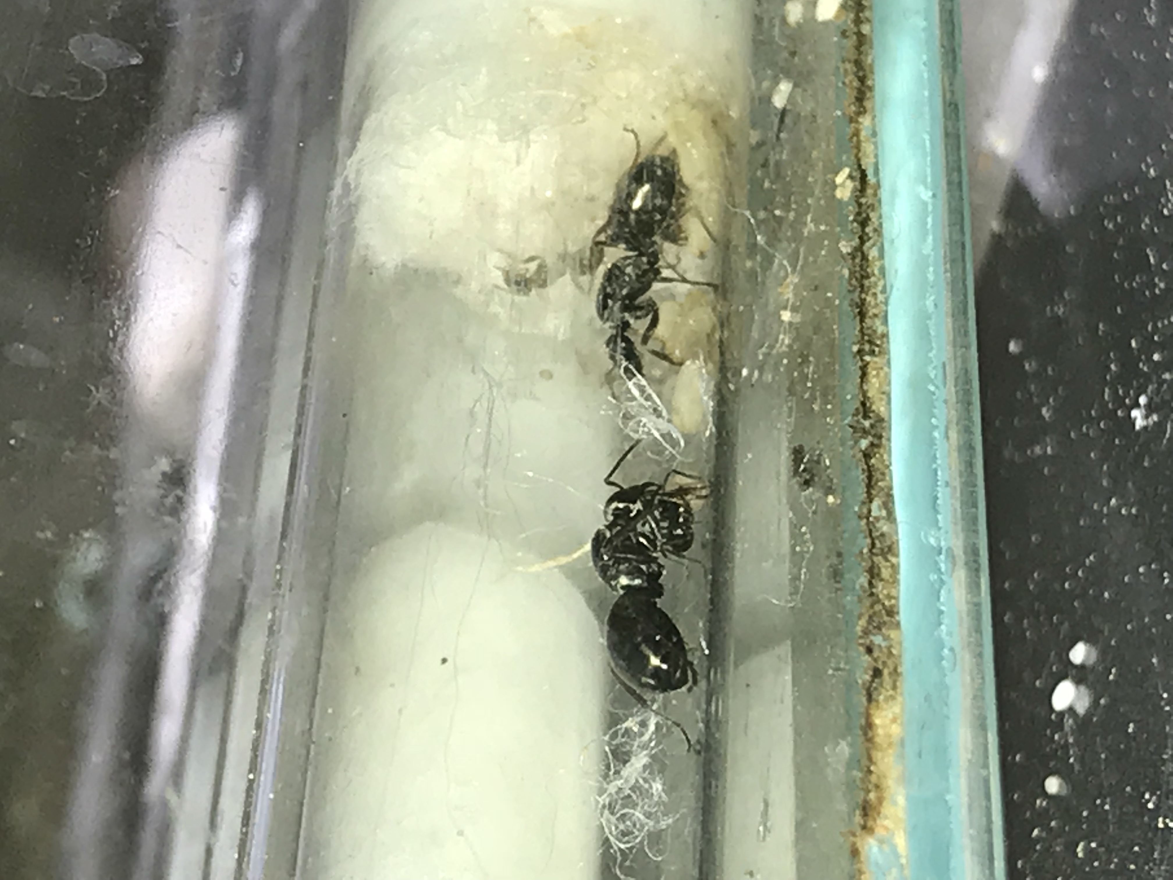 Guten Tag, ich fand vor ca 1 Monat gegen 14 Uhr(sonniger Nachmittag) diese 2 Königinnen. Deren Arbeiterrinnen haben einen spitz zulaufenenden Gaster
