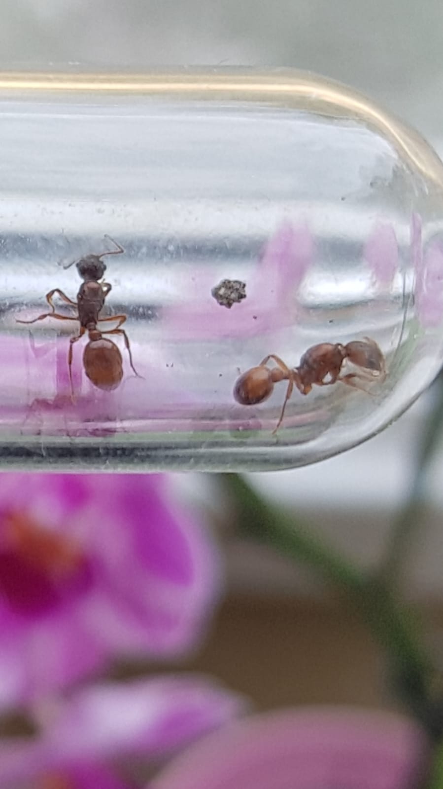 Hallo zusammen! Habe gestern beim Wandern durch den Wald einen Stumpf umgedreht und eine Kolonie Myrmica sp . gefunden mit 5 Gynen ! Habe zwei von ihnen mitgenommen ein paar Arbeiterinnen und einiges an Brut .Jedoch weiĂ ich nicht was fĂŒr eine Myrmica sp . diese sind.FĂŒr Myrmica rubra sind diese finde ich zu hell da meine Myrmica rubra um einiges dunkler sind als diese.Hoffe ihr könnt mir weiter helfen ! Mit freundlichen grĂŒĂen