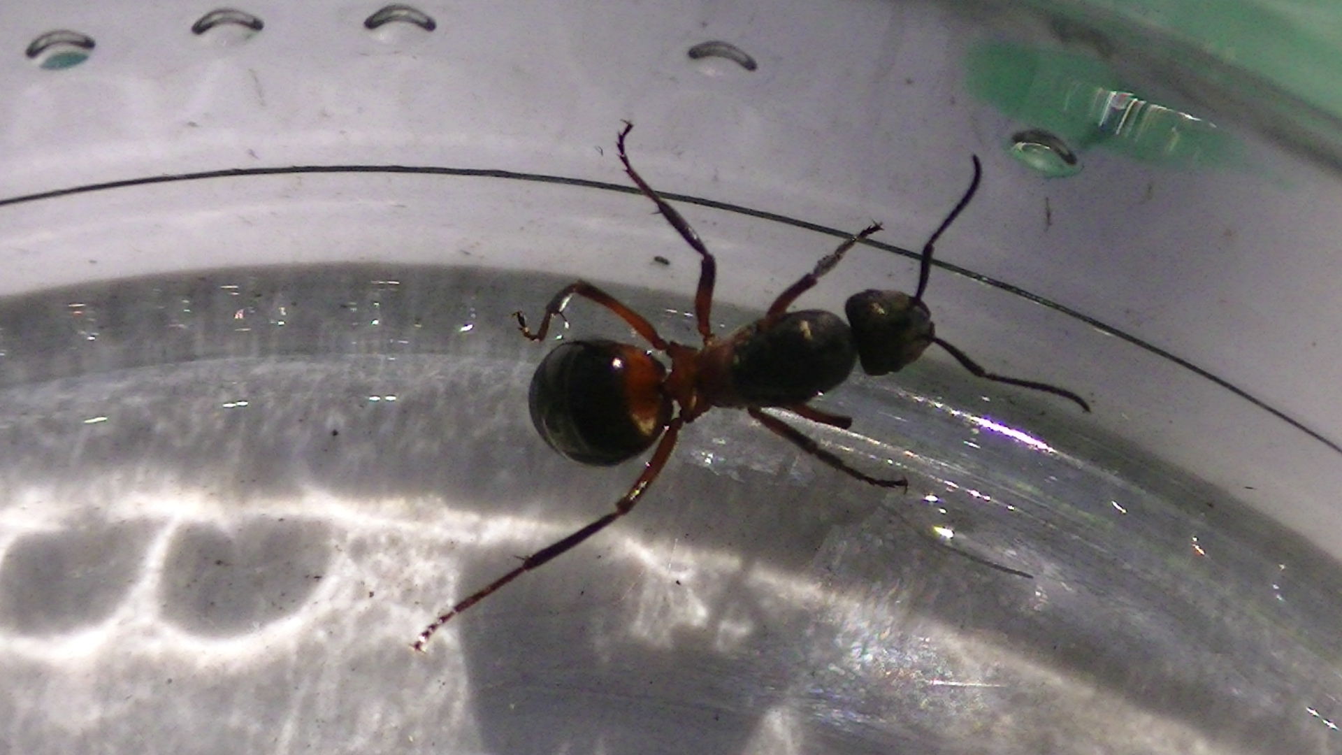 Anhand der glänzenden Gaster und dem Habitus bin ich mir sicher, das es sich um eine Königin der Formica s. str. handelt, du bist gesetzlich verpflichtet sie wieder freizulassen!