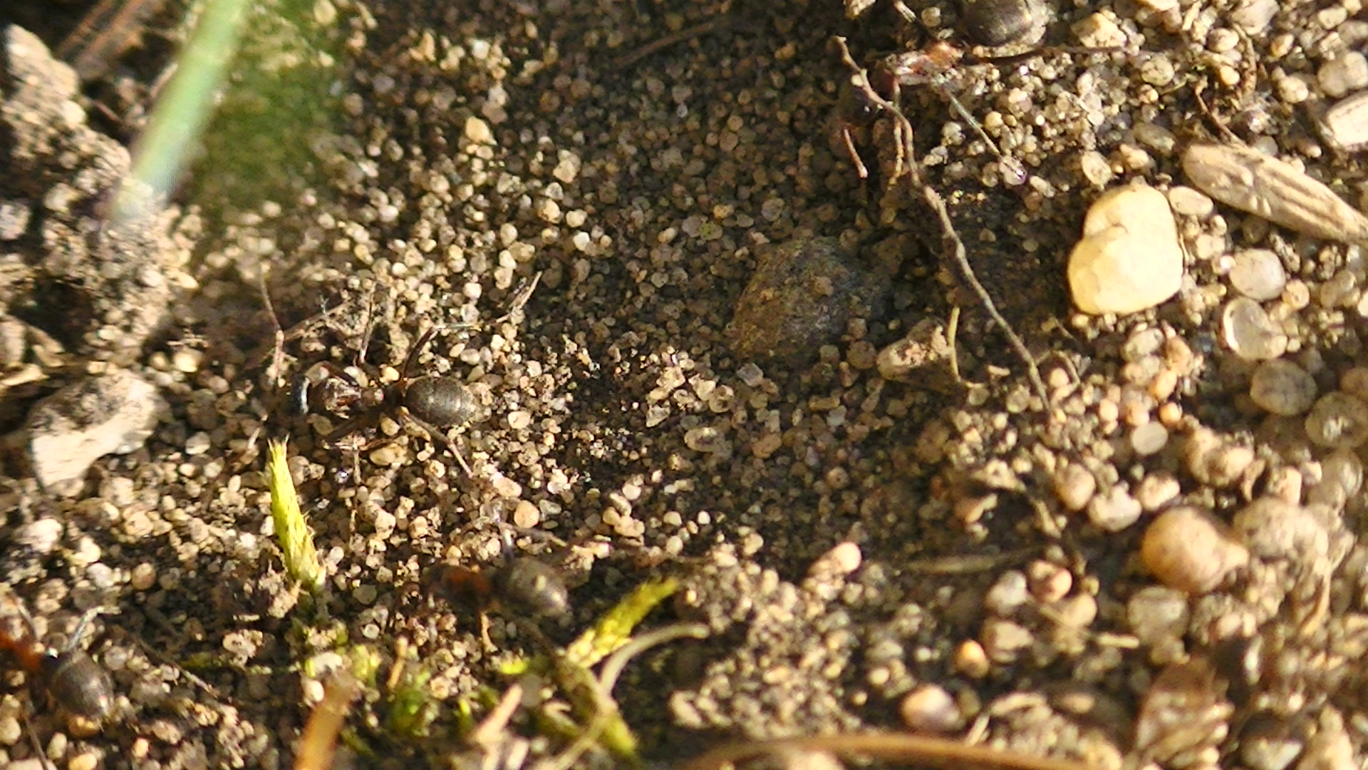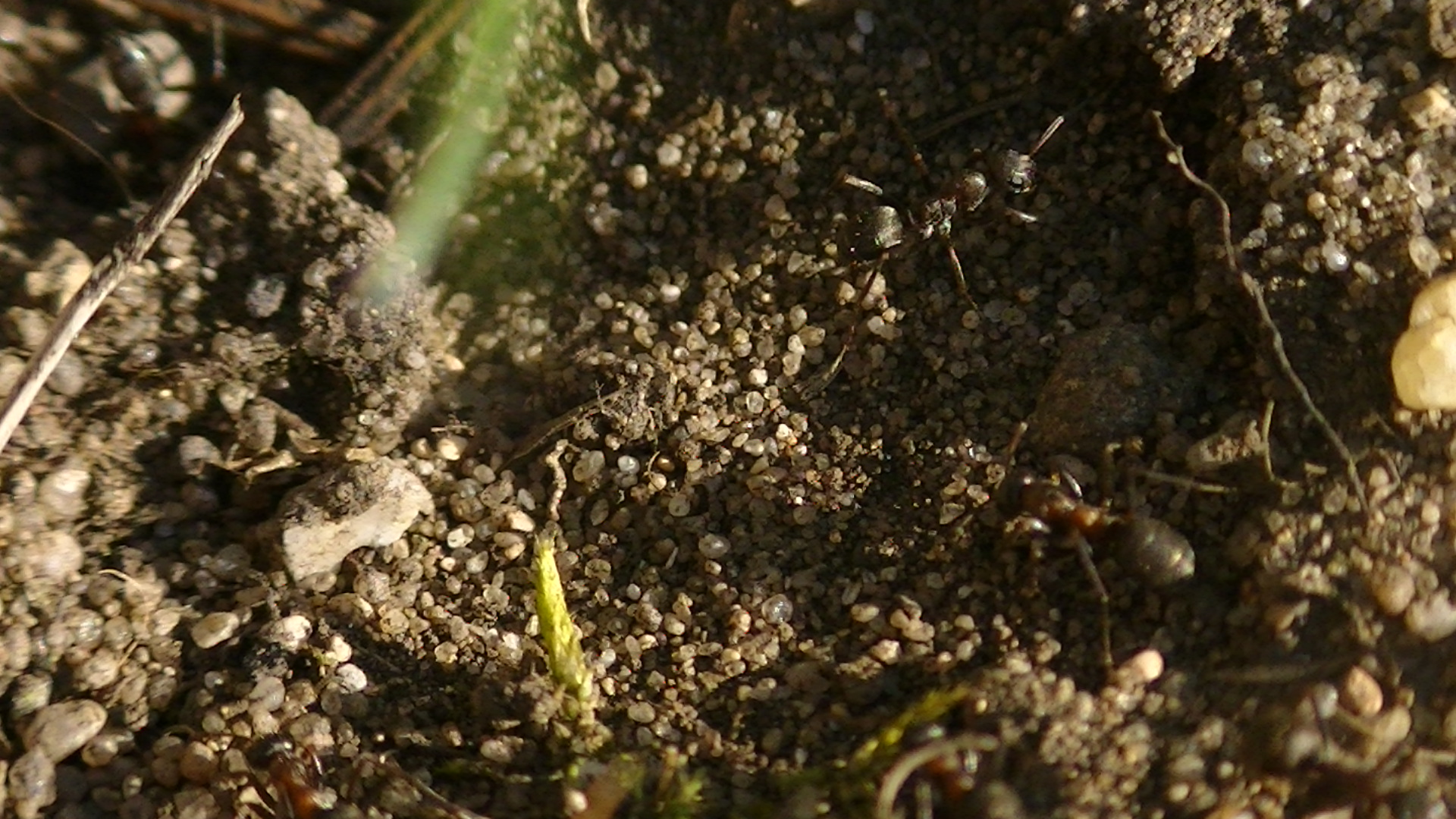 Bei der Art auf den weiteren Bildern gehe ich von Serviformica aus, wegen der riesigen Augen. Könnte z.B. Formica rufibarbis sein (Rotfärbung). Für die Bestimmung der Königin tut das aber nichts zur Sache, denn es ist eindeutig eine geschützte Waldameisenkönigin.