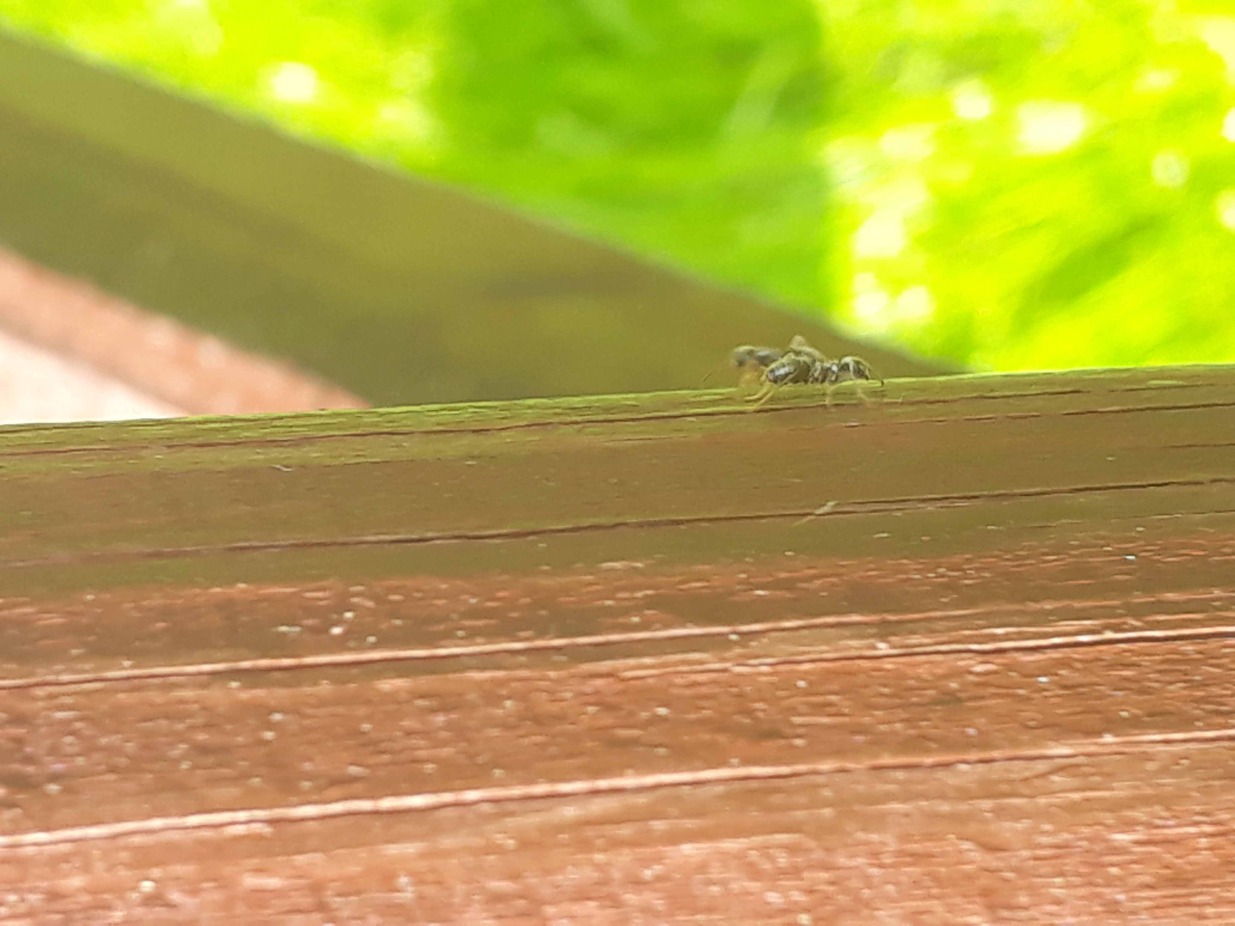 Ich habe diese Bild verkleinert, damit kann man besser die Art bestimmen. Sie baut gerade HĂŒgel und klettert auf Holz. Gestern Abend haben sie sich dort versammelt ca. 100 und sie sind braun.