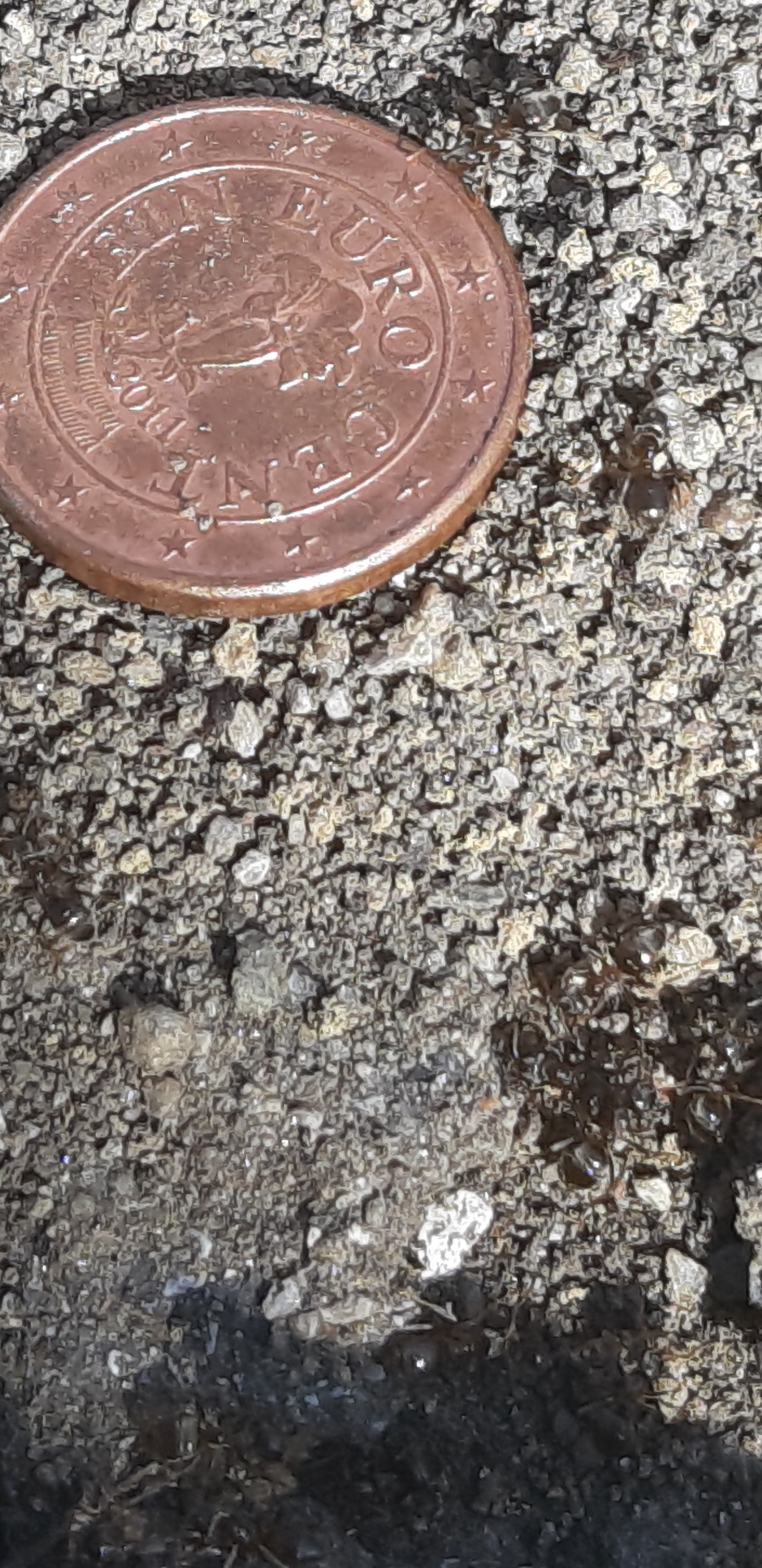 Hallo, habe heute vor meiner HaustĂŒre eine lange AmeisenstraĂe ĂŒber unseren Parkplatz gesehen die zu mehreren Löchern im Asphalt fĂŒhrt.