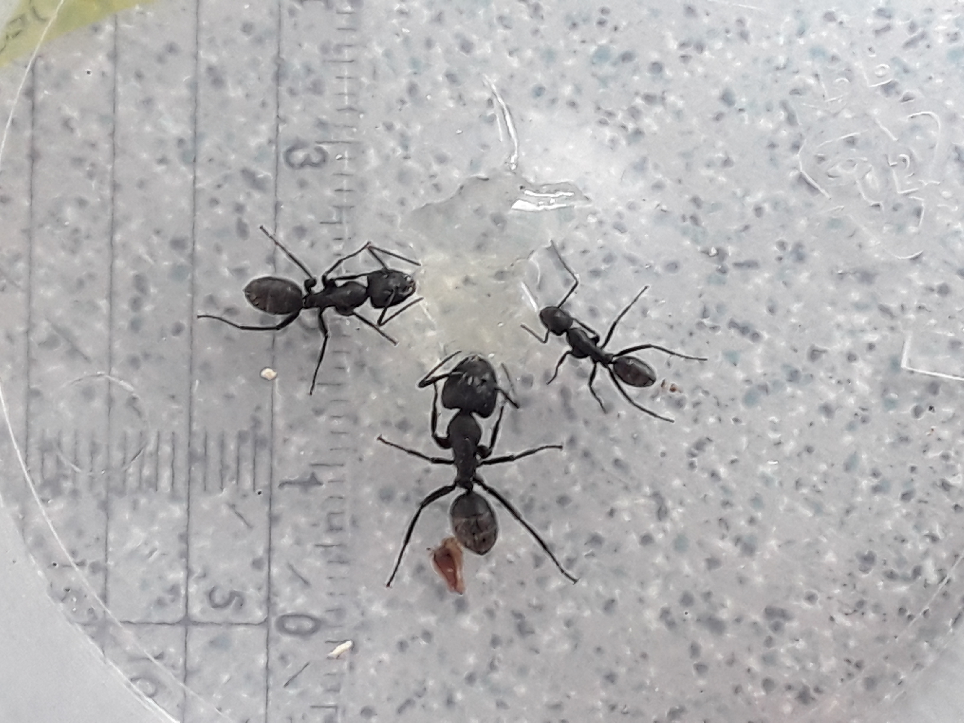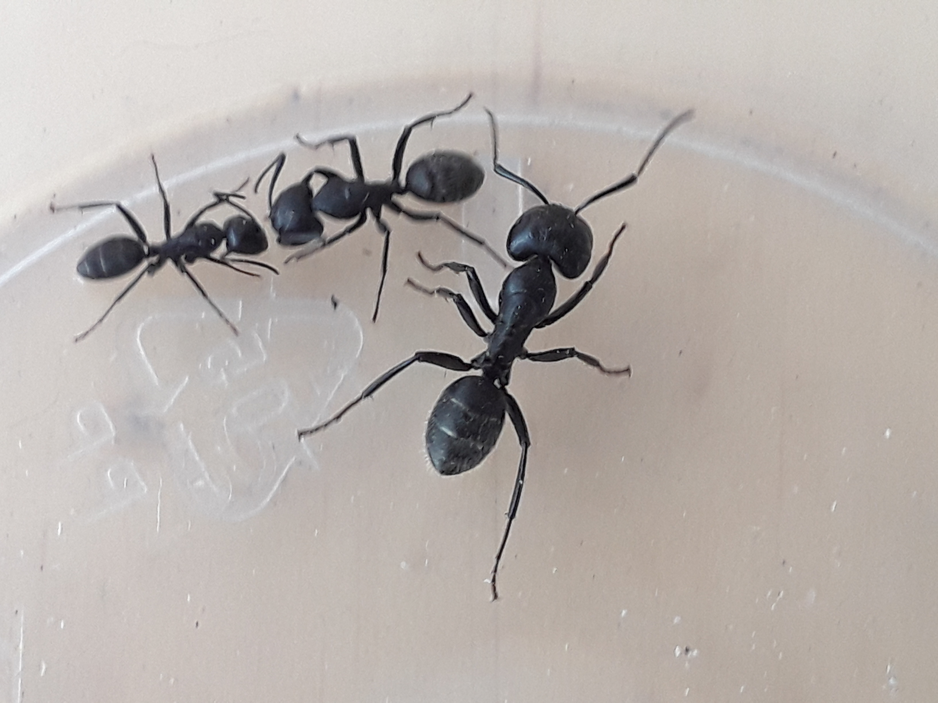 Ameisen gefunden. Es sind drei unterschiedlich große Tiere. Die grĂ¶ĂŸte ist ca.16mm groß. Sie sind hĂ€ufig an einen Bienenhotel zu finden.