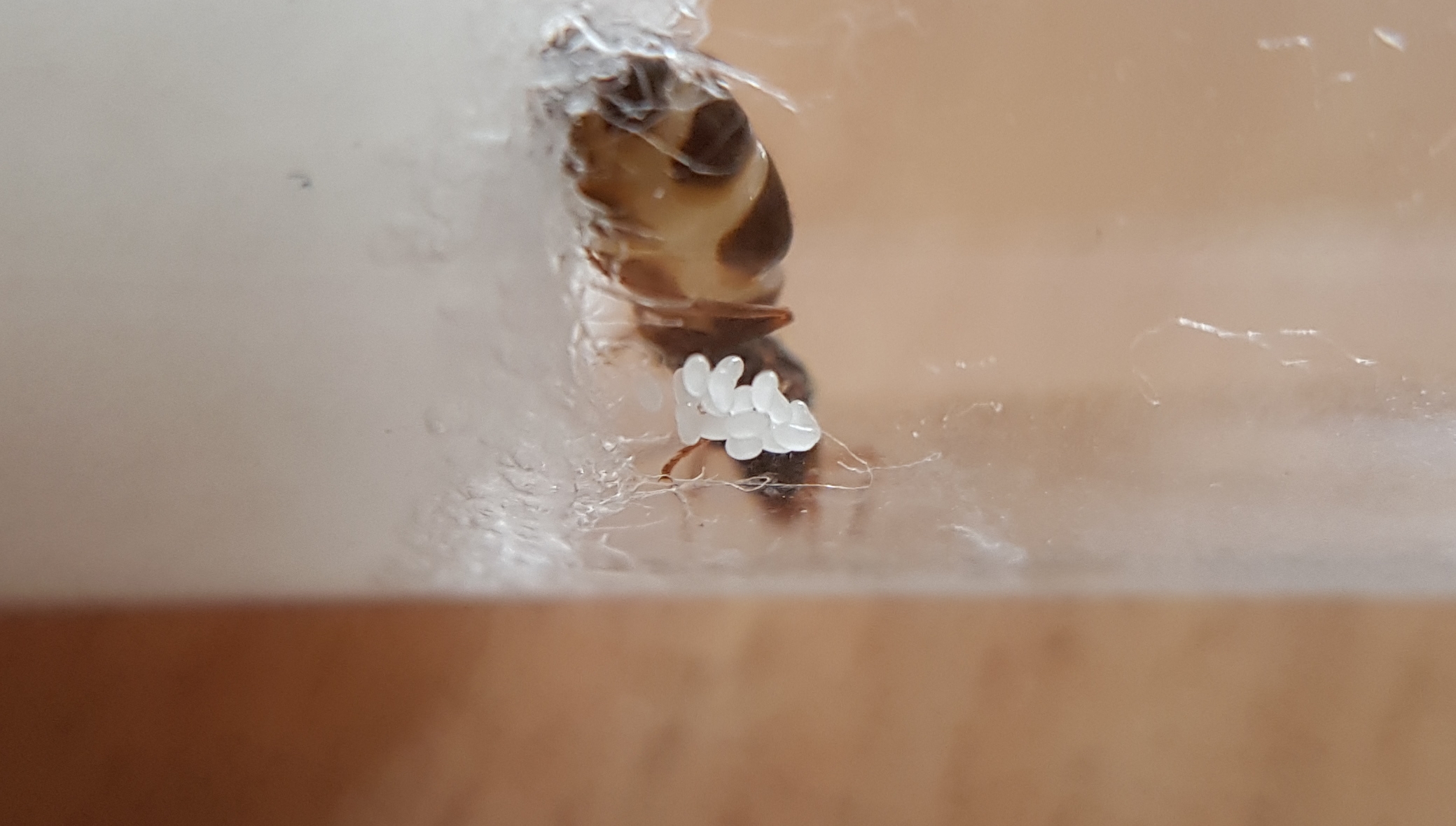 Meine beiden Gynen verhalten sich fĂŒr meinen Laieneindruck völlig kontrĂ€r. Die "dunklere" wie ich sie nennne (weil sie nur schmale Streifen am Gaster vorweist) wird bei Licht recht aktiv und man sieht daß es sie stört. Die Andere ist unter Lichteinfluss völlig gechillt und lĂ€uft nicht erst hektisch umher wie ihre Kollegin. Aber der grĂ¶ĂŸte Unterschied: die Letztere ist total Fett (physogastrisch wie ich gelernt habe) und hat auch schon ca. 15! Eier gelegt. Es sah auch so aus als wolle sie die Eier vor mir und meinem Objektiv "abschirmen". Die "dunkle" ist mmn davon noch weit entfernt.