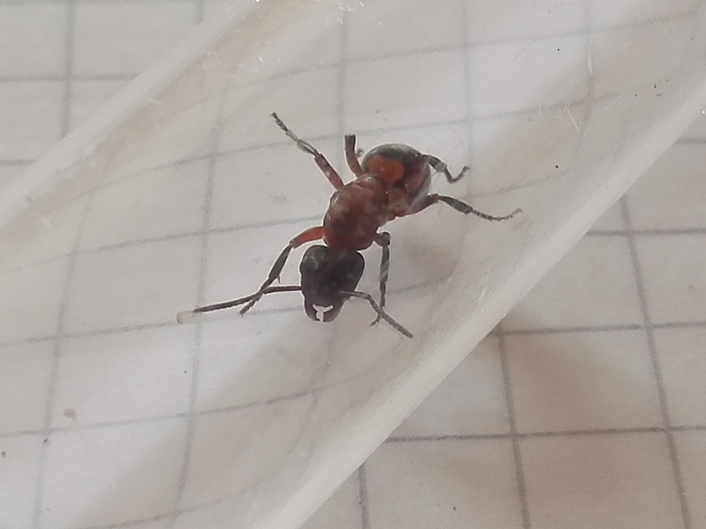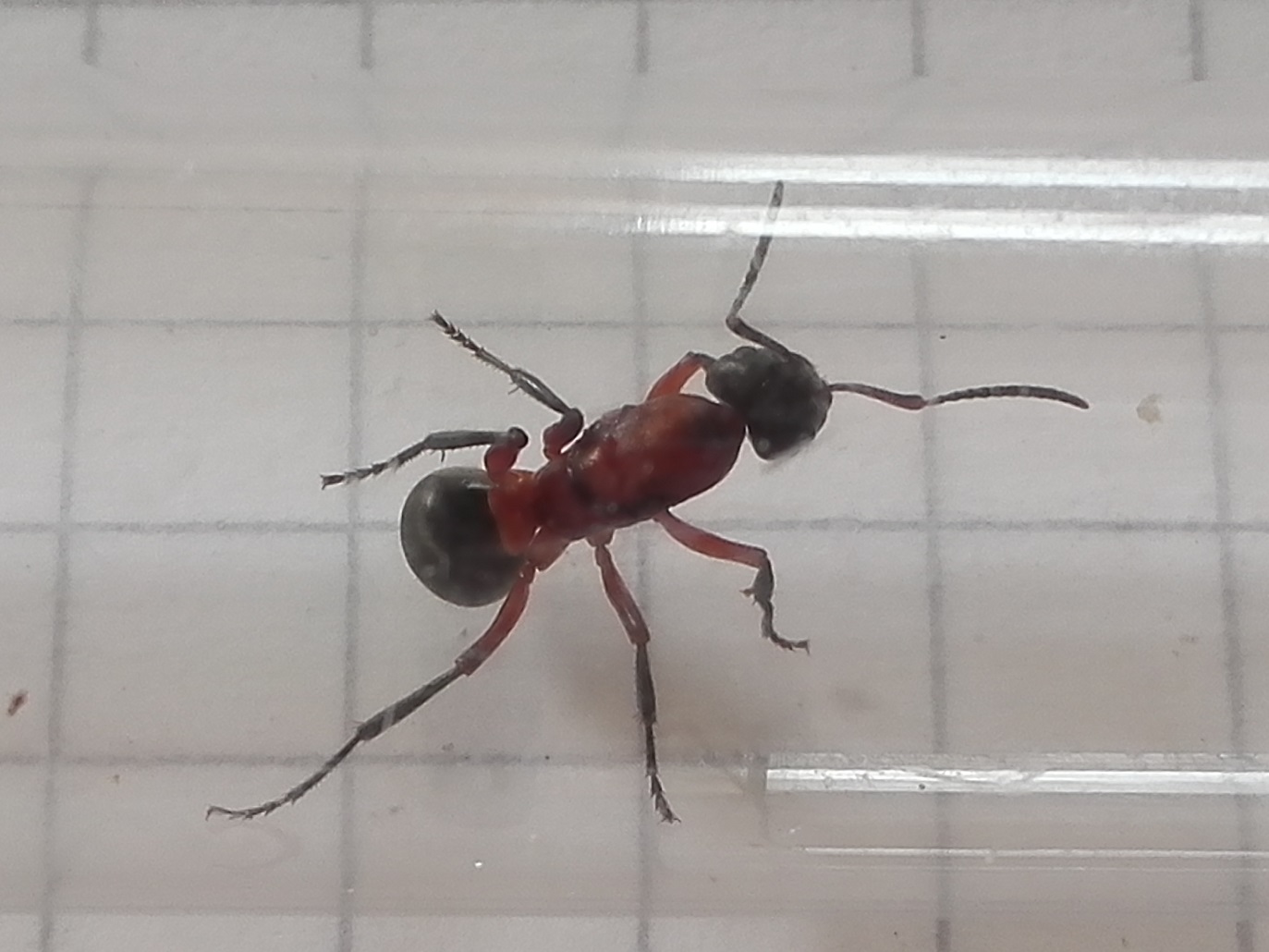 ZunÀchst versuchte ich, die beiden Damen in einem langen RG zu vergemeinschaften. Dabei liefen sie zwar hektisch auf-und ab, haben sich aber nicht direkt attackiert. Das sah im Wesentlichen so aus, wie bei den Formica polyctena-Gynen, bevor ich diese wieder aussetzte.