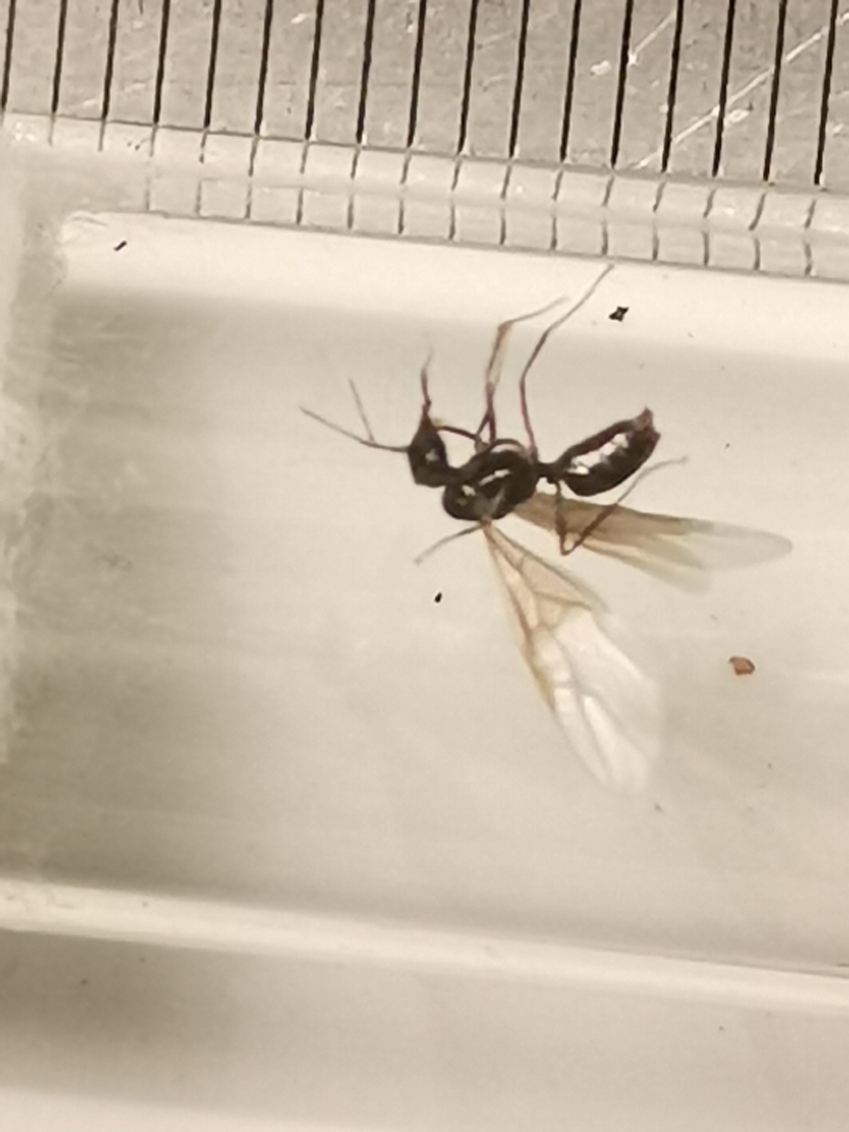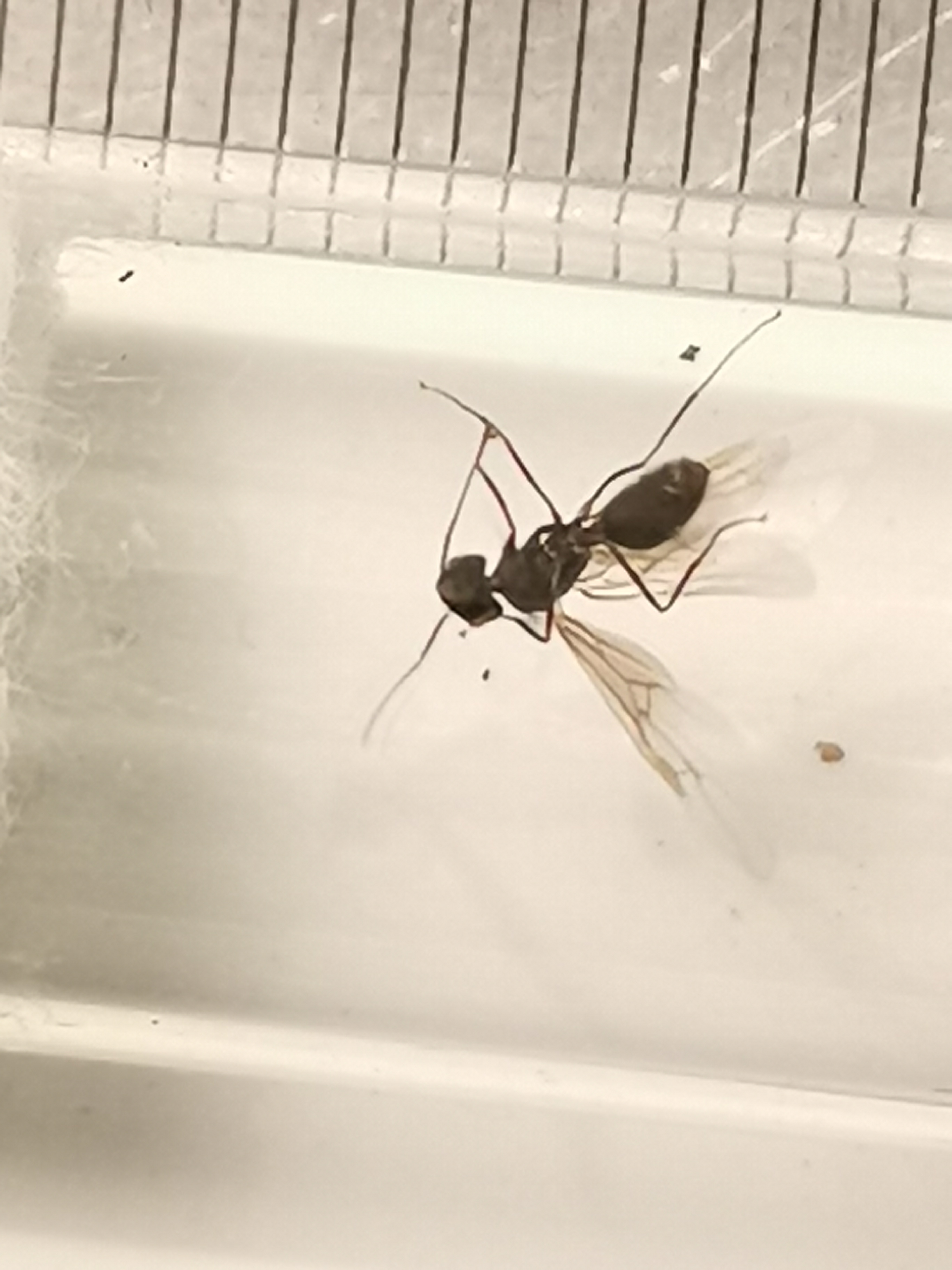 Ich hoffe, sie ist befruchtet. Als ich sie fand, stand ein flügel auf halb-acht. Für mich sah es so aus, als ob sie dabei war ihn grade abzuzwicken. Bis Jetzt ist aber nichts weiter passiert. Vielleicht mag sie ihre Flügel ja auch nur zu sehr