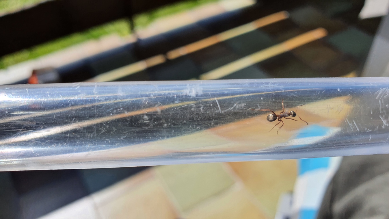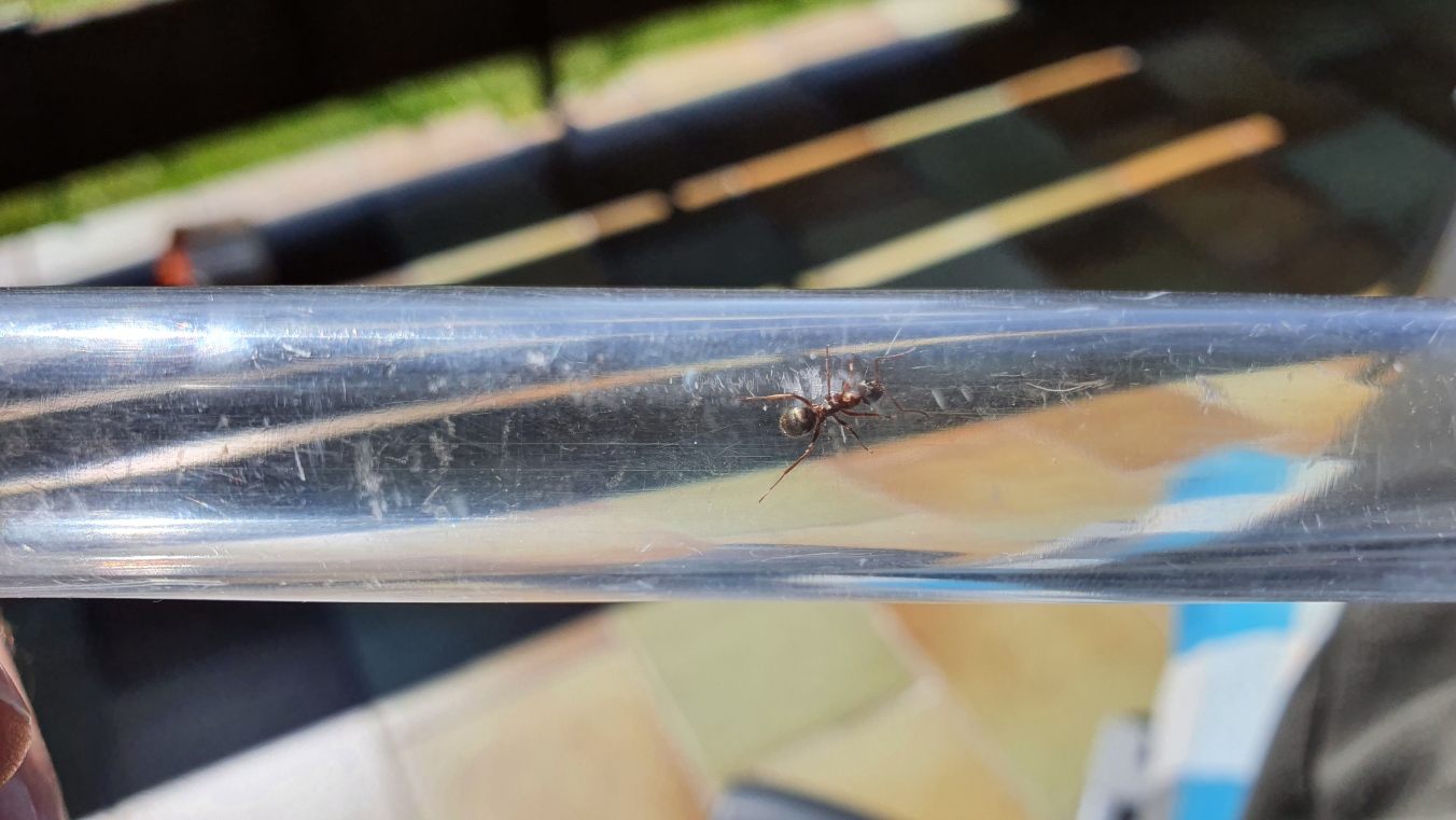 Im Prinzip ist die Arbeiterin etwa doppelt so groß und wuchtiger als eine Lasius niger und ist Schwarz/Gold mit rötlichen Beinen.