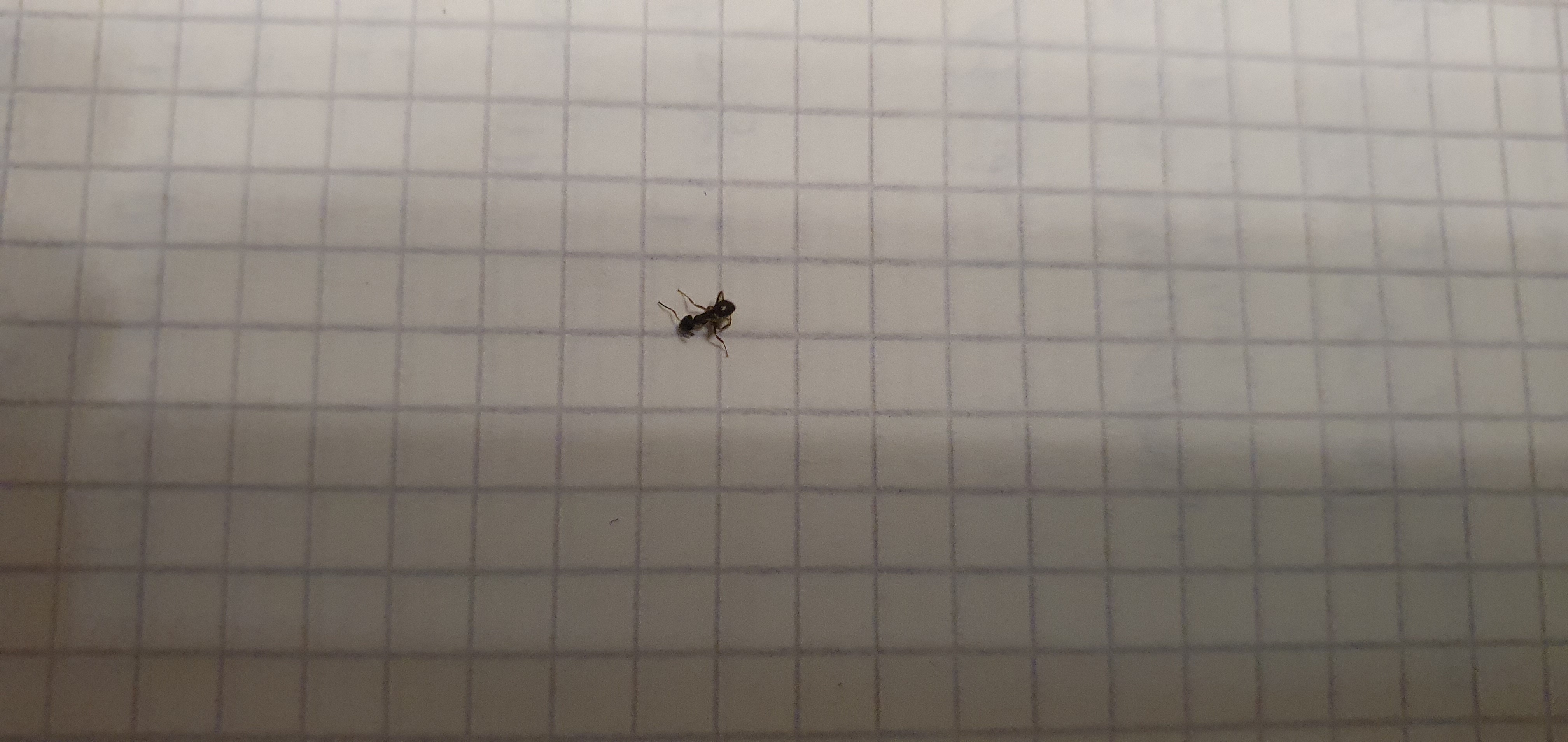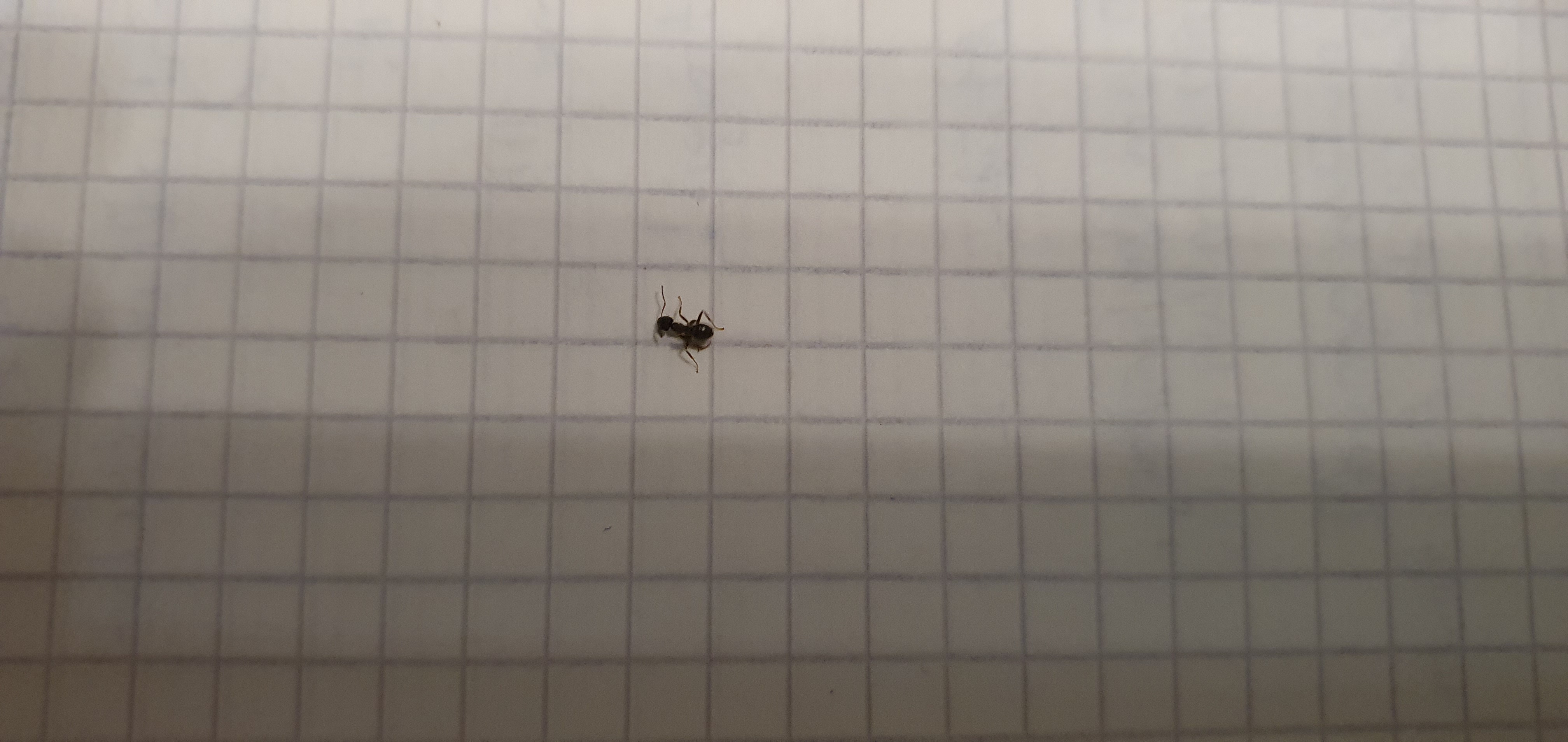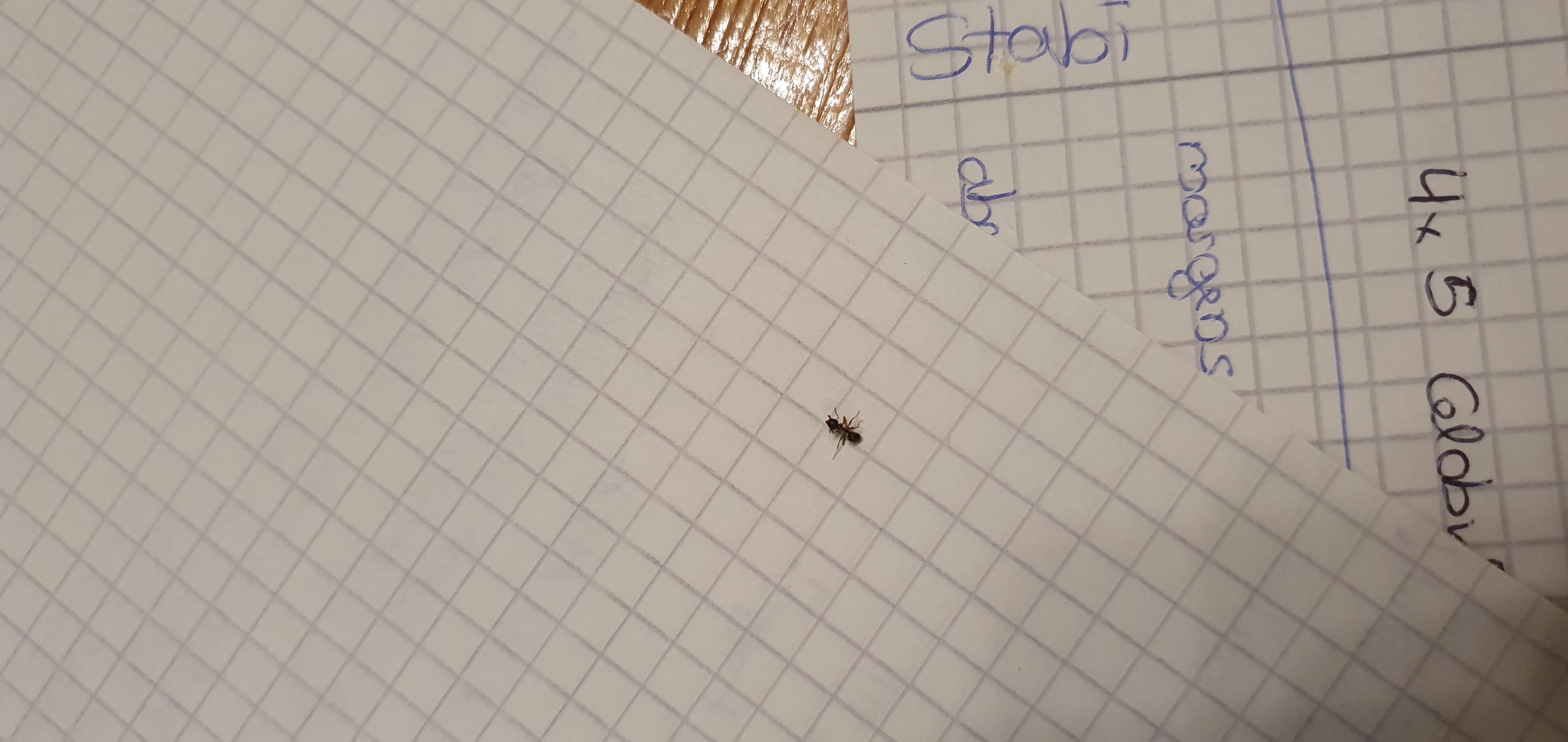 ein KĂ€stchen hat 5 mm . Die Ameise hat ca 4mm