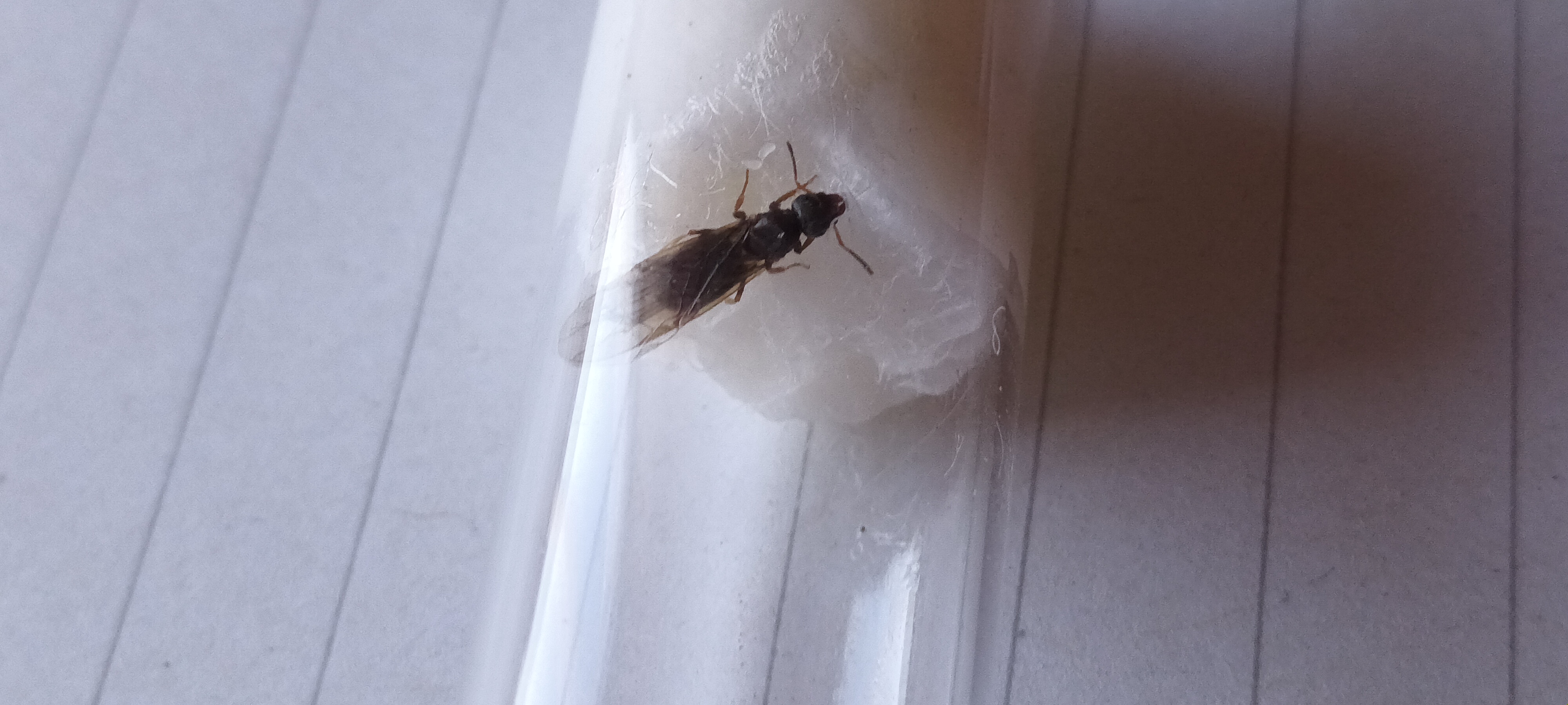 Ich habe sie ohne Flügel gefunden. Sie ist fast ganz schwarz. Auf dem
