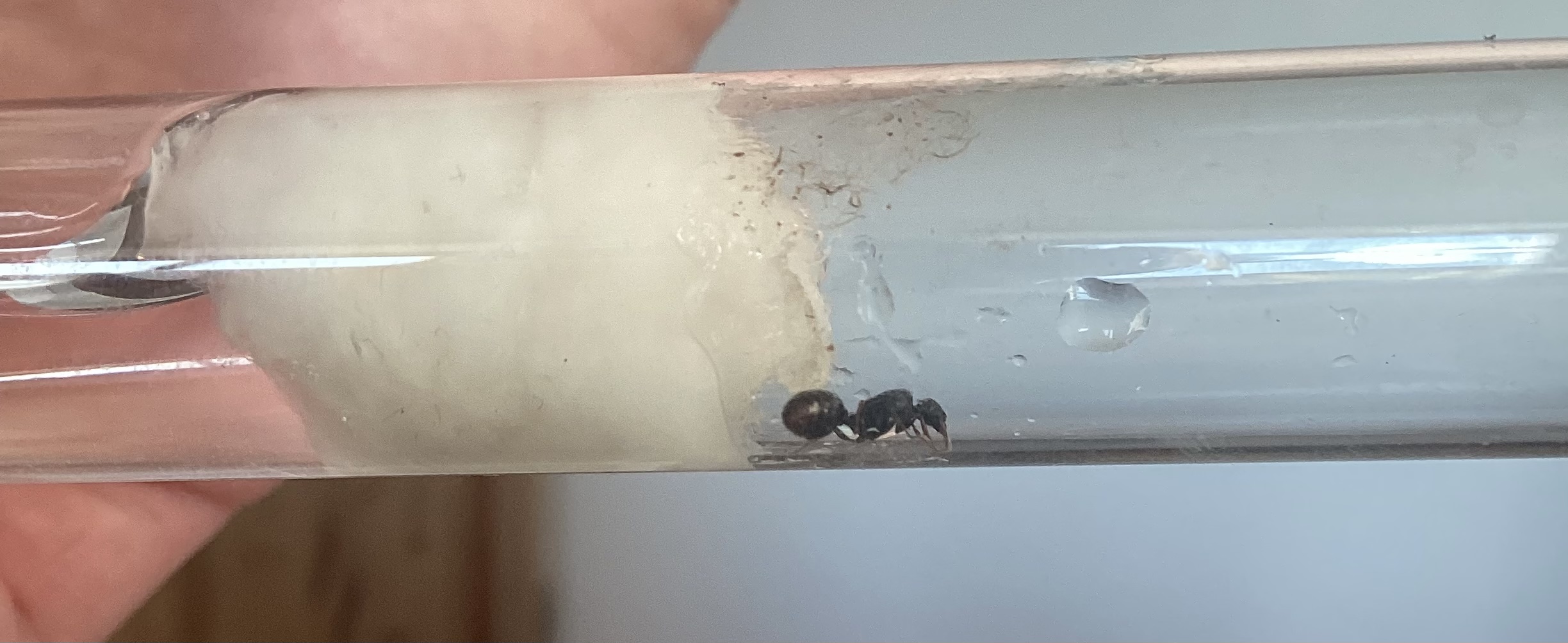 Ich hoffe man kann es auch ohne ReferenzgröĂe einordnen, sie ist aber auf jeden Fall kleiner als die Lasius niger, die ich letztes Jahr gefangen habe.