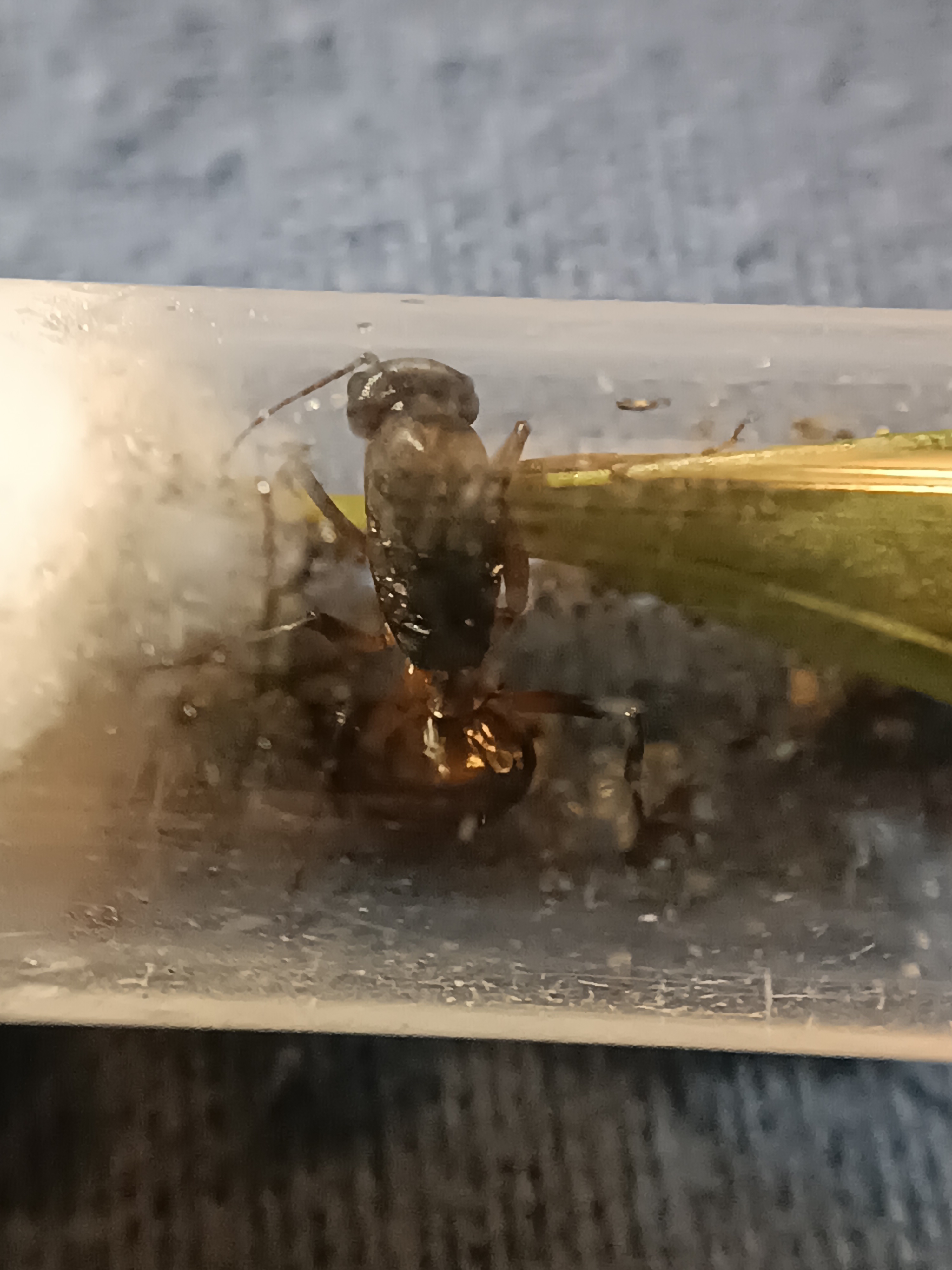 Sie ist etwa 18mm lang, braun und an machen stellen orange gefärbt, gefunden hab ich sie wie gesagt auf einem Gehweg in der Nähe einer Wiese und Dünen. 100m entfernt war ein Strand. Bevor ich sie gefunden habe, hatte ich auch vereinzelt ein paar Arbeiterinnen gefunden (auch auf dem Gehweg) sie waren polymorph von 1cm bis 18mm also die Größe der
