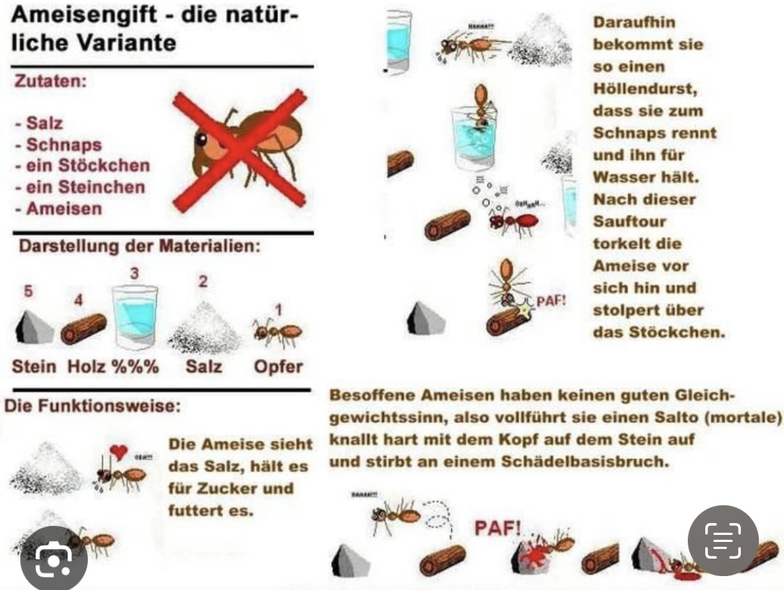 wie ihr schon vom Titel her lesen könnt, führt meine Mama einen kleinen privaten Terrassenkrieg gegen die Ameisen die sich im Holzsichtschutz breitgemacht haben. Und da ich ja solche "Viecher" halte, will sie wissen was sie gegen die machen kann. Da sie mir nicht wirklich glaubt, das die keinen Schaden anrichten und nur in den Ritzen und im Beet leben und das man mit dem Problem "Sie sind halt da und nerven mich" eigentlich leben kann. Frage ich mal hier nach, um welche Art es sich genau handelt, damit sie selber nachlesen kann, dass der Sichtschutz nicht plötzlich in einen Haufen aus Sägemehl auflöst.