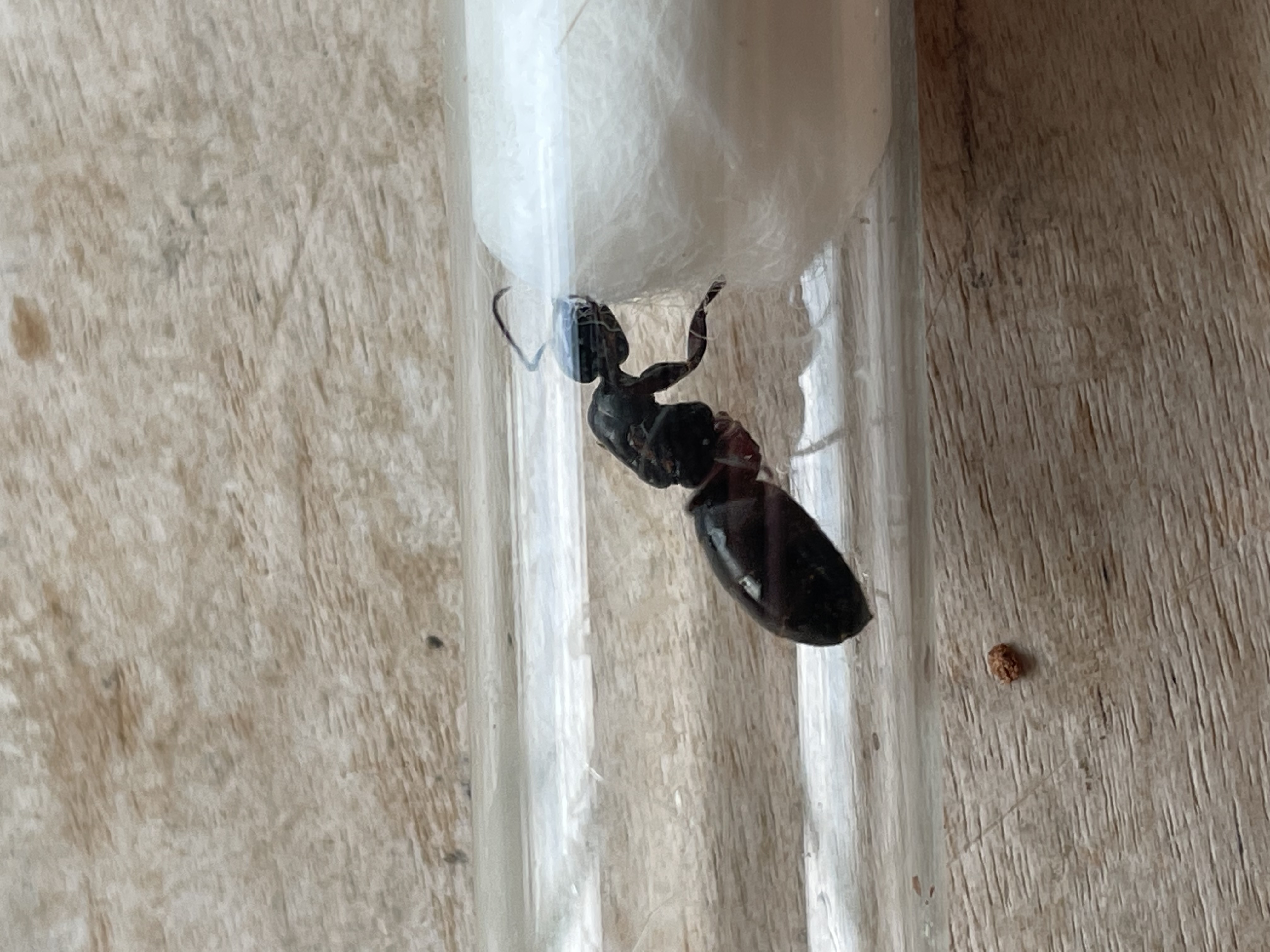 habe heute zufällig eine Königin aufgesammelt. Sie ist sehr dunkel, relativ groß (Camponotus sp. / Formica sp.?), jedoch kann ich nicht genau bestimmen welche Spezies.