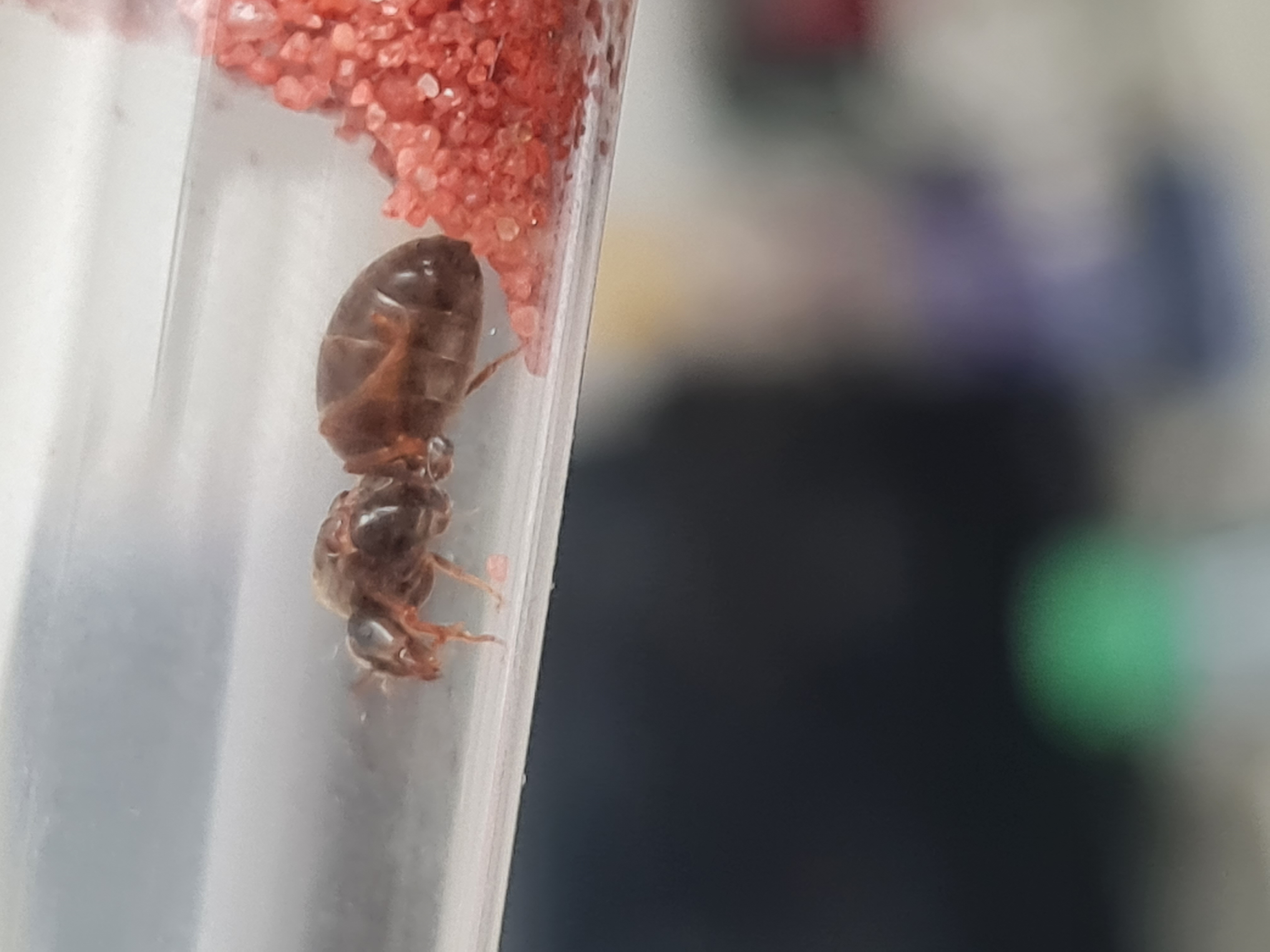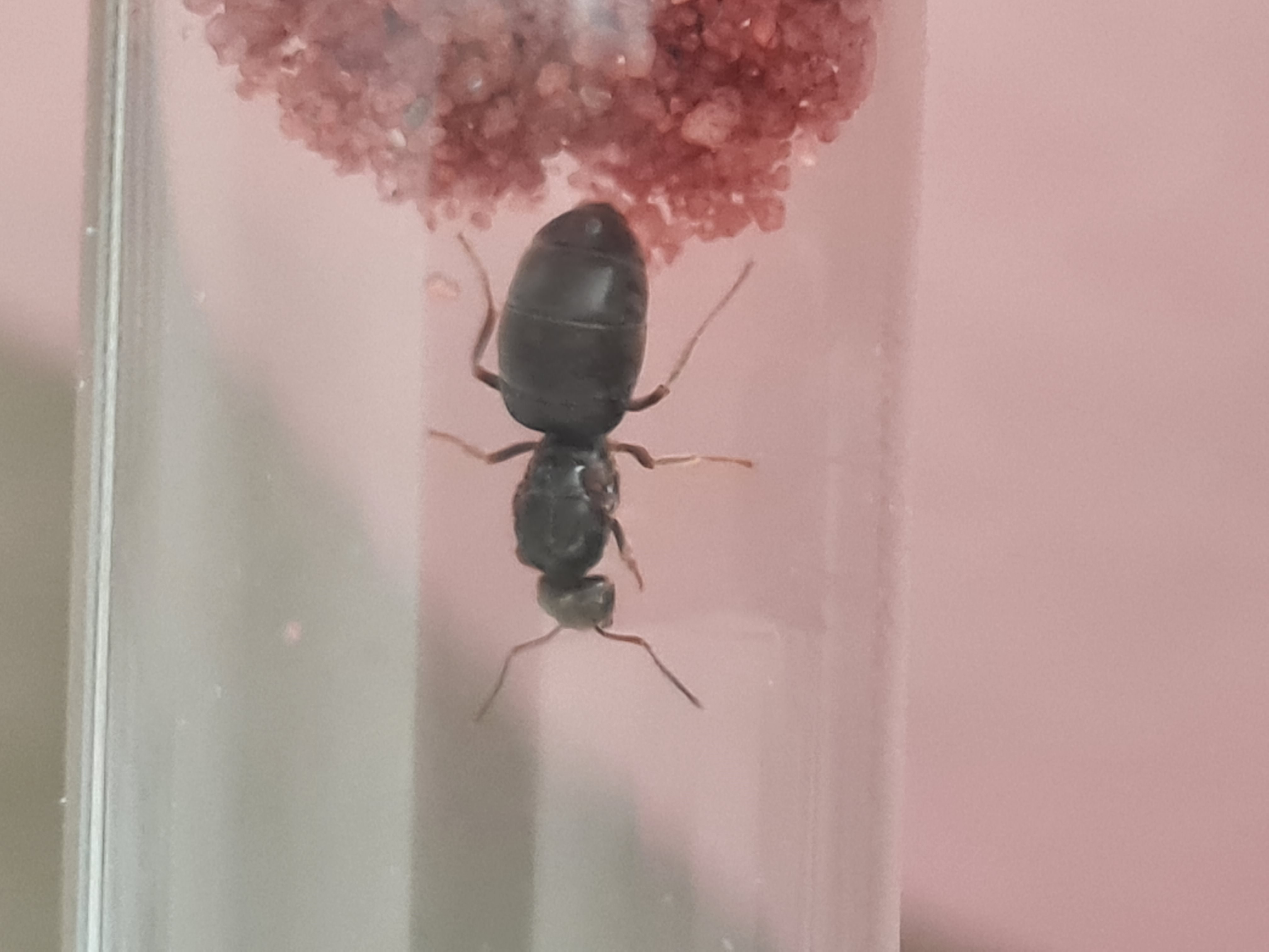 Es handelt sich hierbei um meine Formica cunicularia, die ich am 05.07.23 gefunden habe. Zusammen mit ihren Kokonpuppen und der allerersten Arbeiterin, die überhaupt bei mir geschlüpft ist