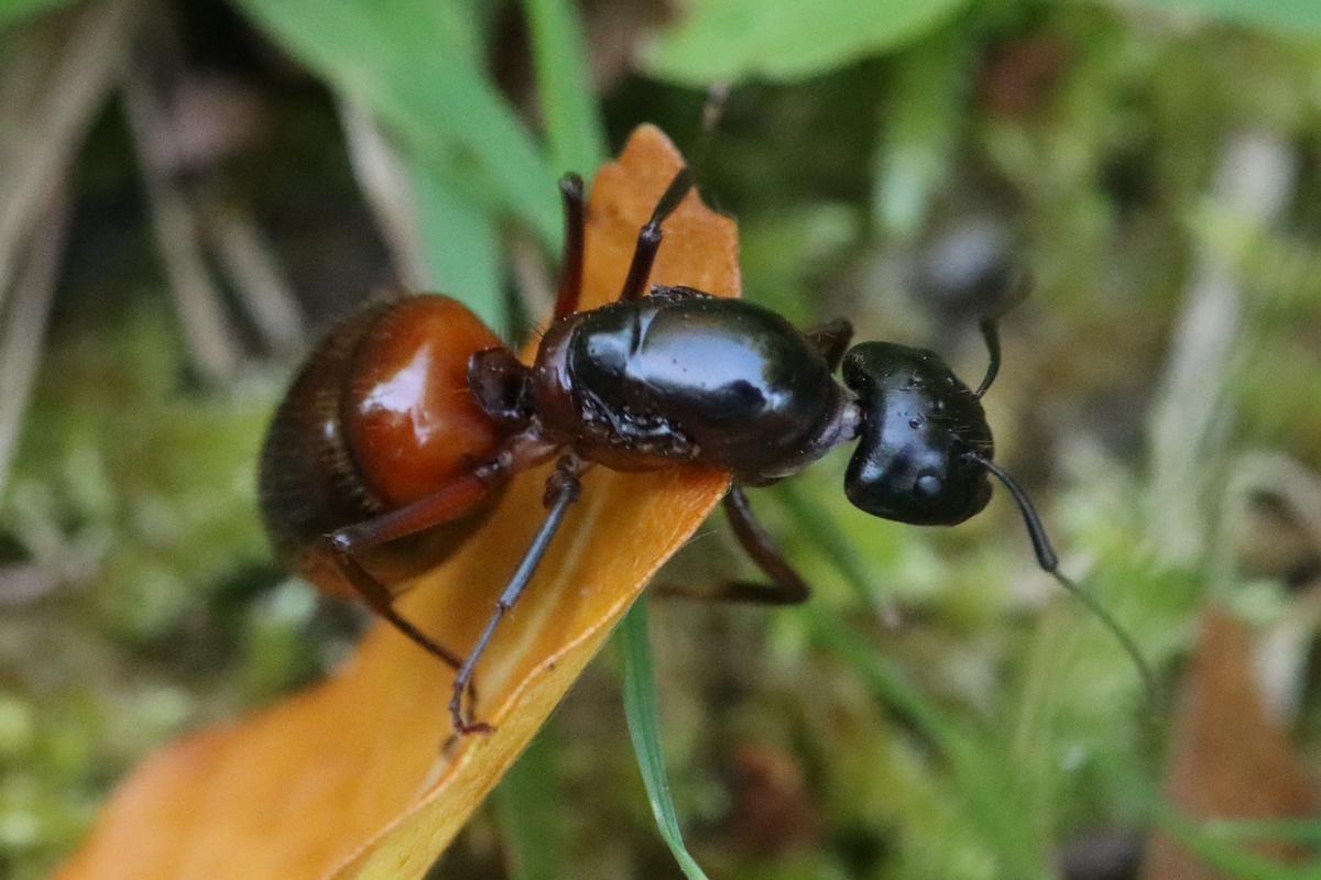 gestern (18.08.23) fand ich auf einem lichten Waldweg (D, BW, Südschwarzwald, Gem. Münstertal) diese einzelne, auffallend große (schätze so 16 bis 17 mm) Ameise. Da ich bei Ameisen völlig planlos bin, baruche ich eure Hilfe.