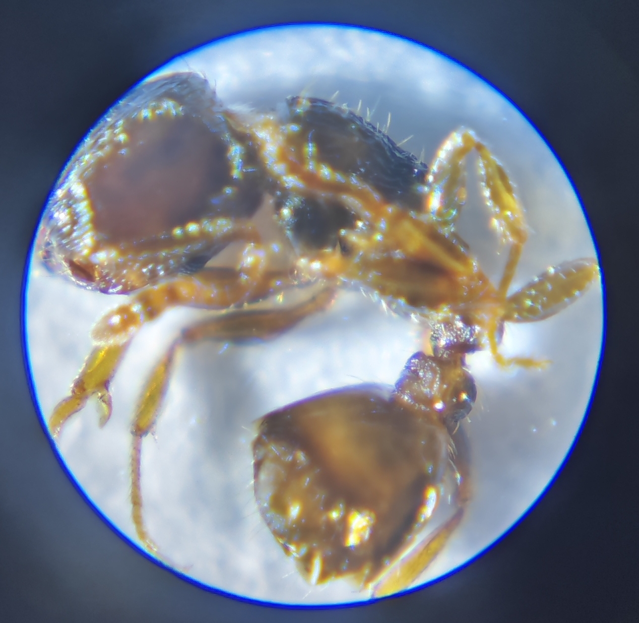 ich bin sehr neu was Ameisen anbelangt und bräuchte eure Hilfe bei der Bestimmung von Ameisen, die sich bei mir seit einigen Tagen Wohnzimmer und Schlafzimmer breit machen. Sie sind ca 3 mm lang und mit bloßem Auge komplett schwarz. Unterm Mikroskop konnte ich einige Bilder machen (bitte entschuldigt die schlechte Qualität).