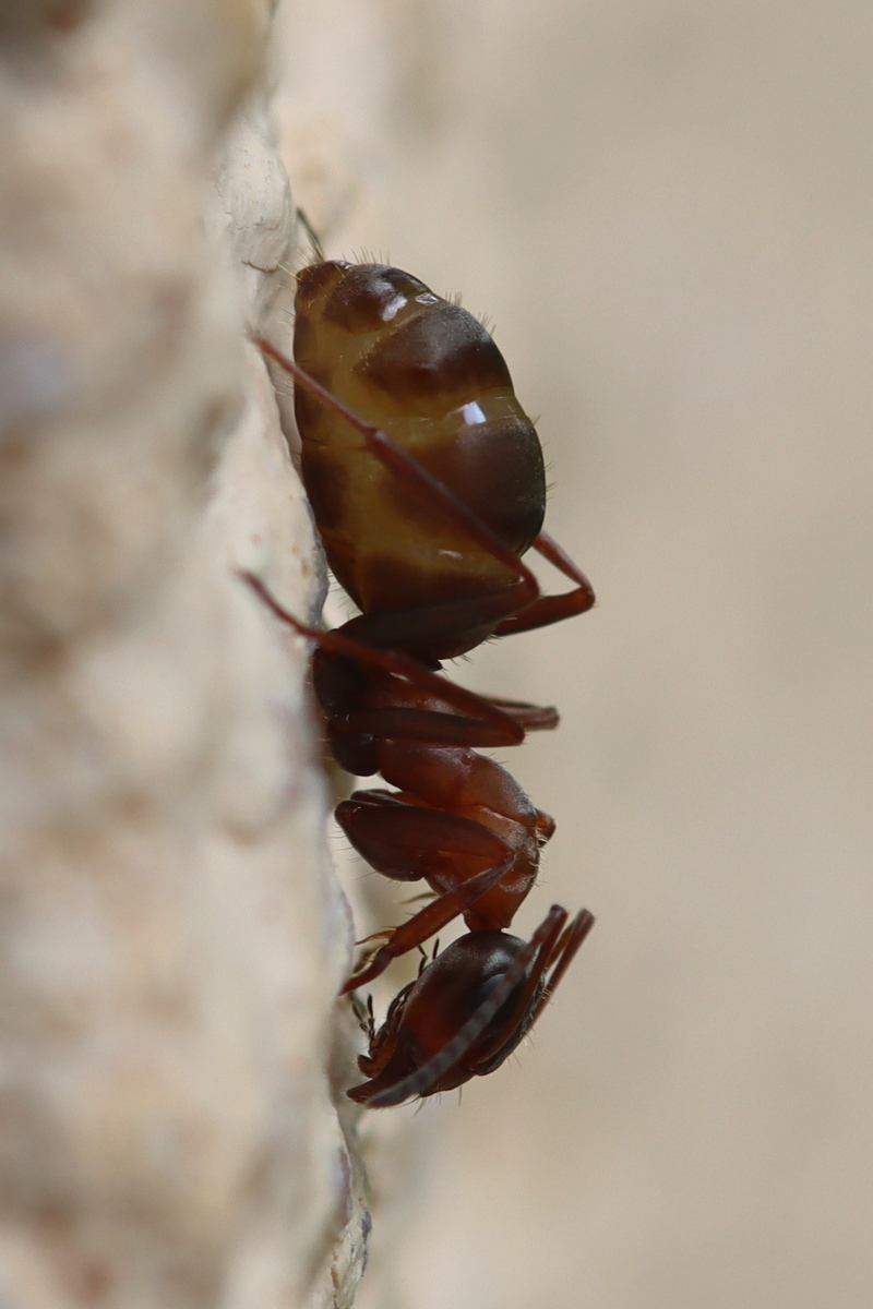 heute saĂ an meiner Hauswand (D, BW, Staufen im Breisgau) diese 5 bis 6 mm groĂe Ameise. MerkwĂŒrdigerweise bewegte sie sich einen lĂ€ngeren Zeitraum nicht von der Stelle, was ich fĂŒr ein paar Fotos nutzte. Kann man sie mit diesen Bildern bestimmen?