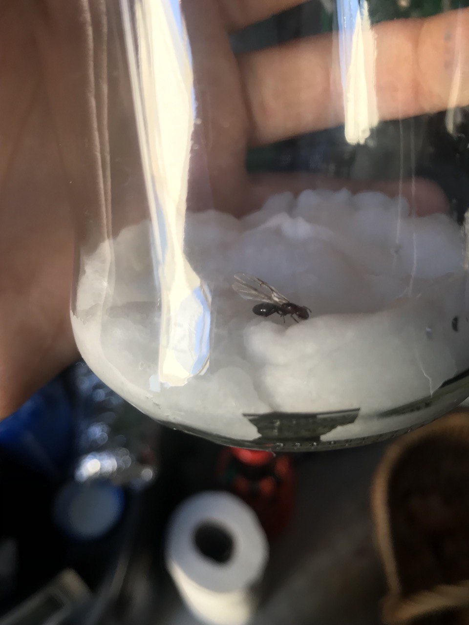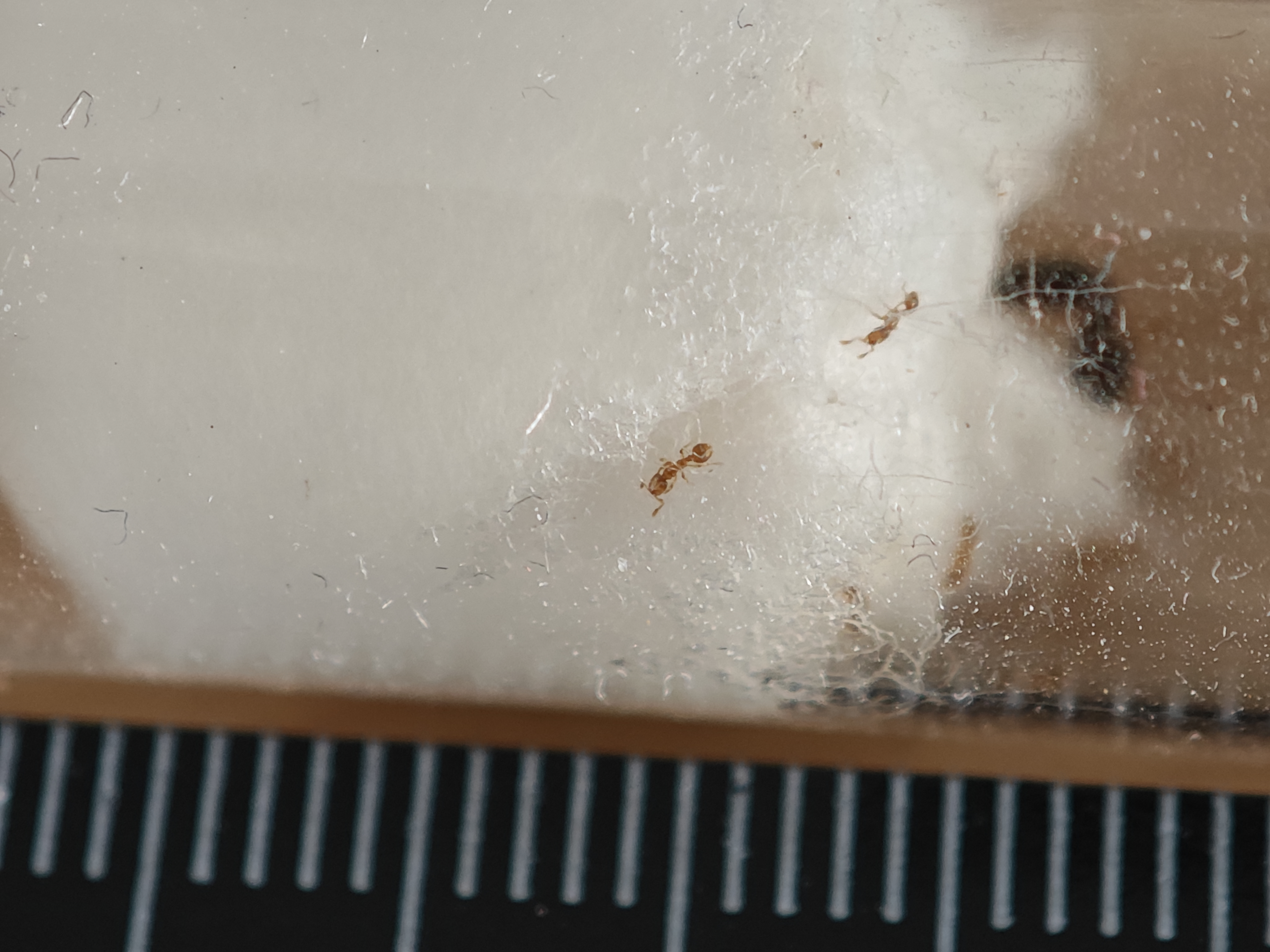 S. fugax ist allerdings ein wenig speziell, die Arbeiterinnen sind zahlreich und winzig (1-3mm) und die ersten Arbeiterinnen sogar noch kleiner (um die 0,5mm). Zum Glück sind sie keine sehr motivierten Kletterer und leben am liebsten möglichst viel unterirdisch.