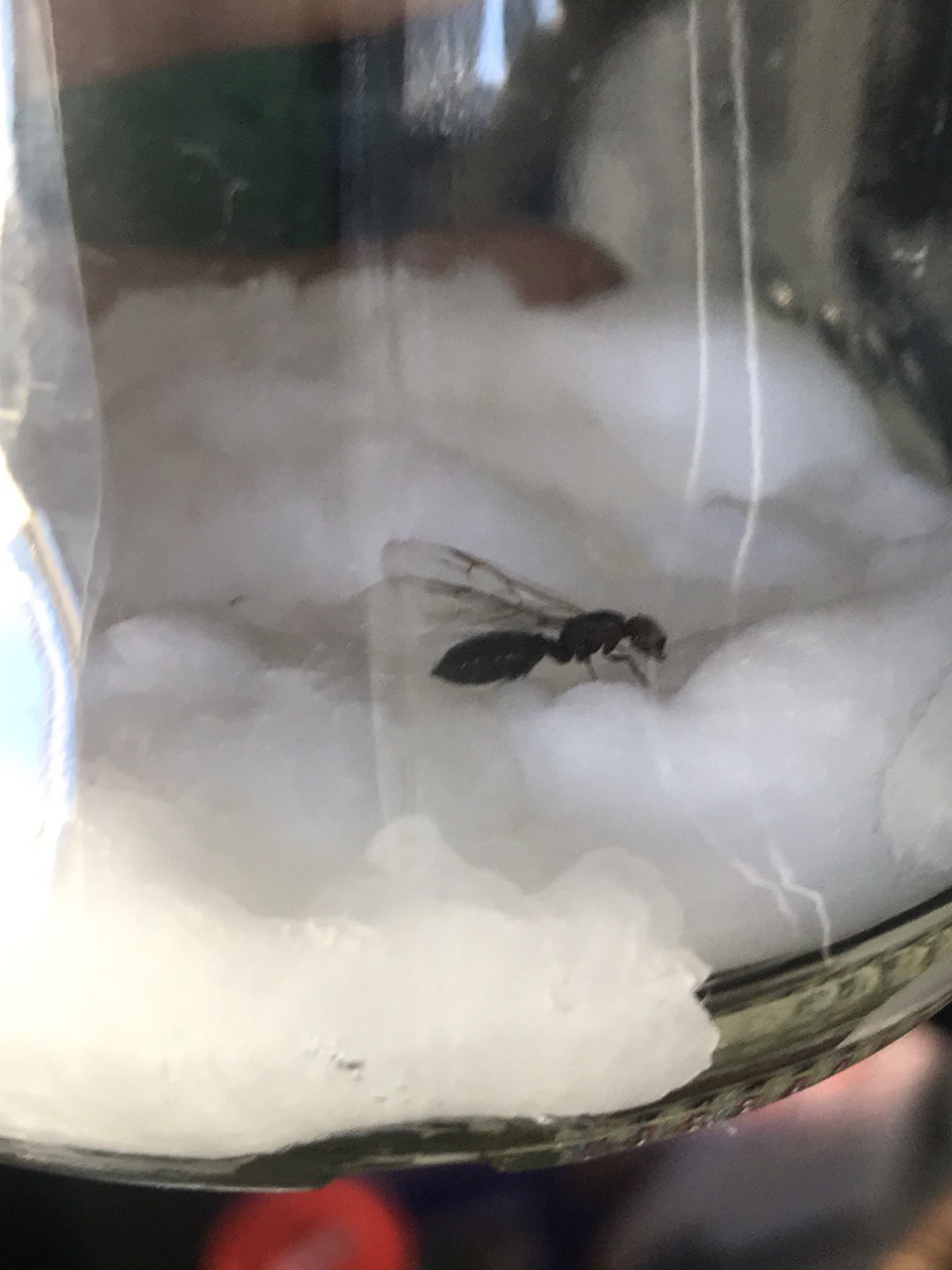 Ja, Crematogaster scutellaris, das könnte wirklich sein. Die Königin hat auch so einen orangenen Kopf. Nein, leider nicht – wenn ich versuche, sie zu messen, dann rennt sie herum. Aber ich schätze, so etwa 13 mm.