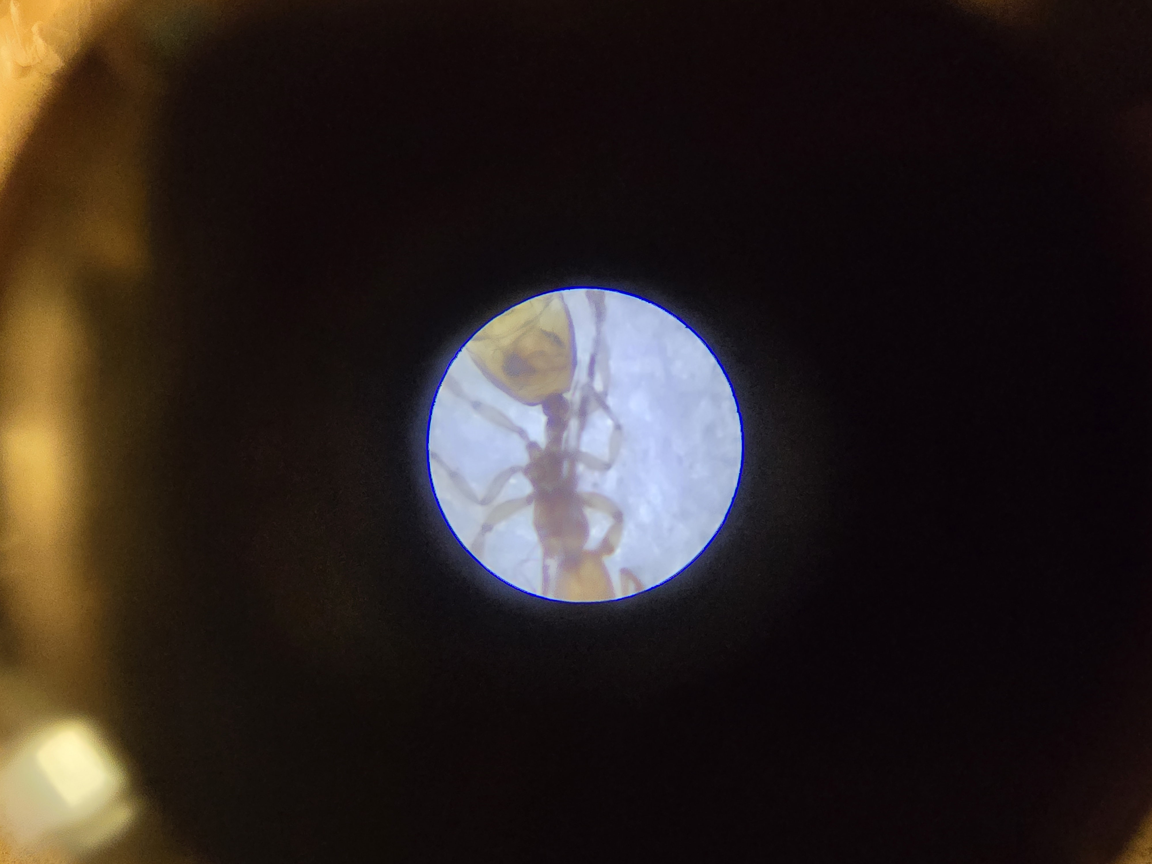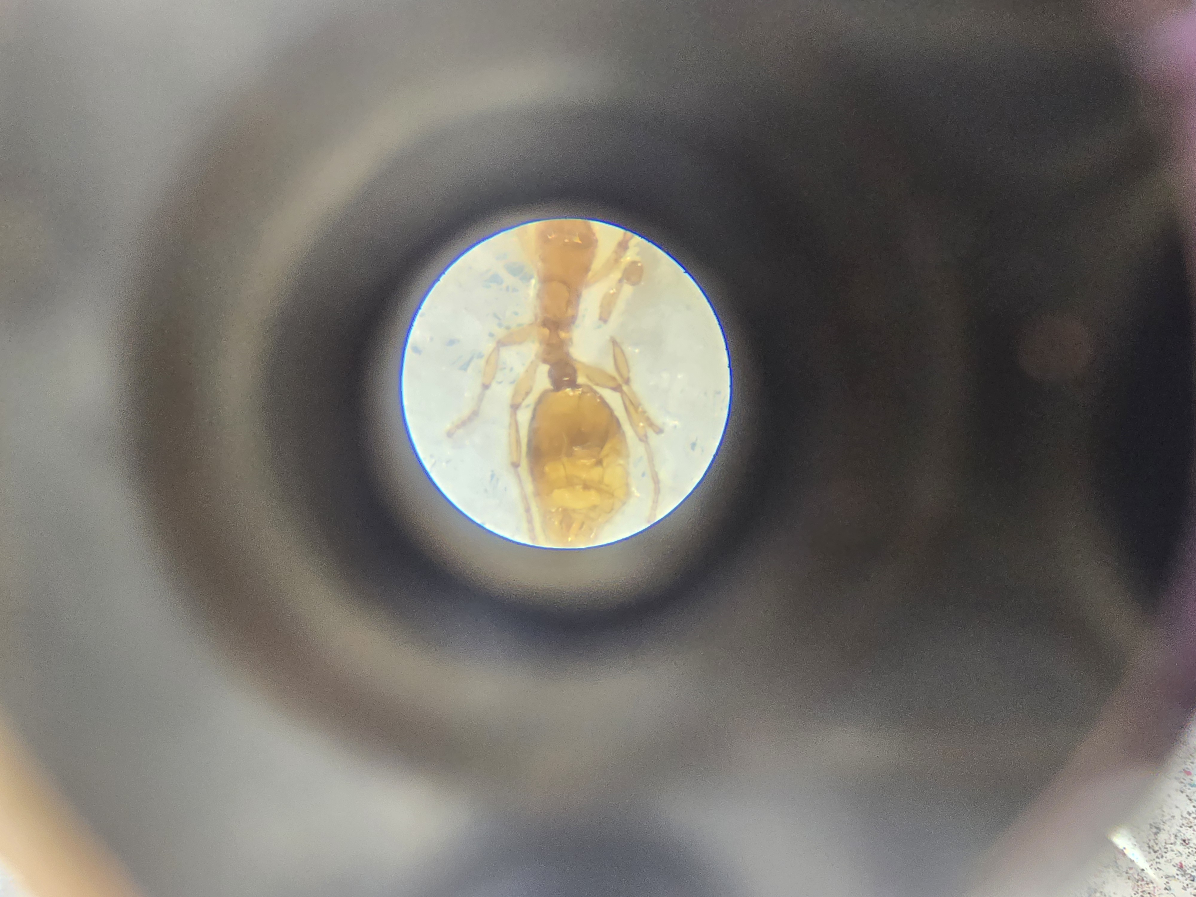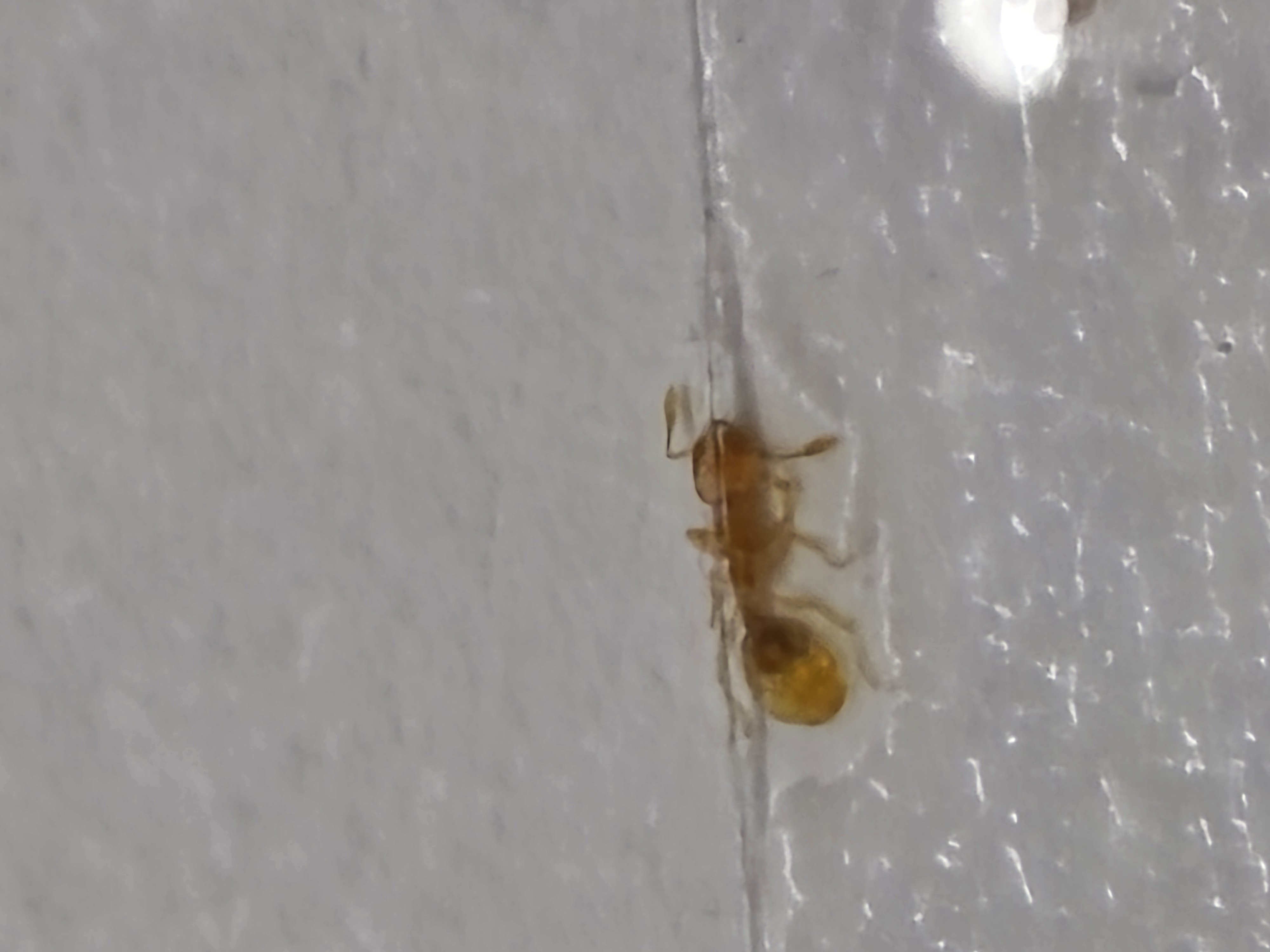 Die Ameisen sind 2mm groĂ, gelblich/rötlich und mit freiem Auge schwer zu erkennen. Man muss schon genau hinsehen.