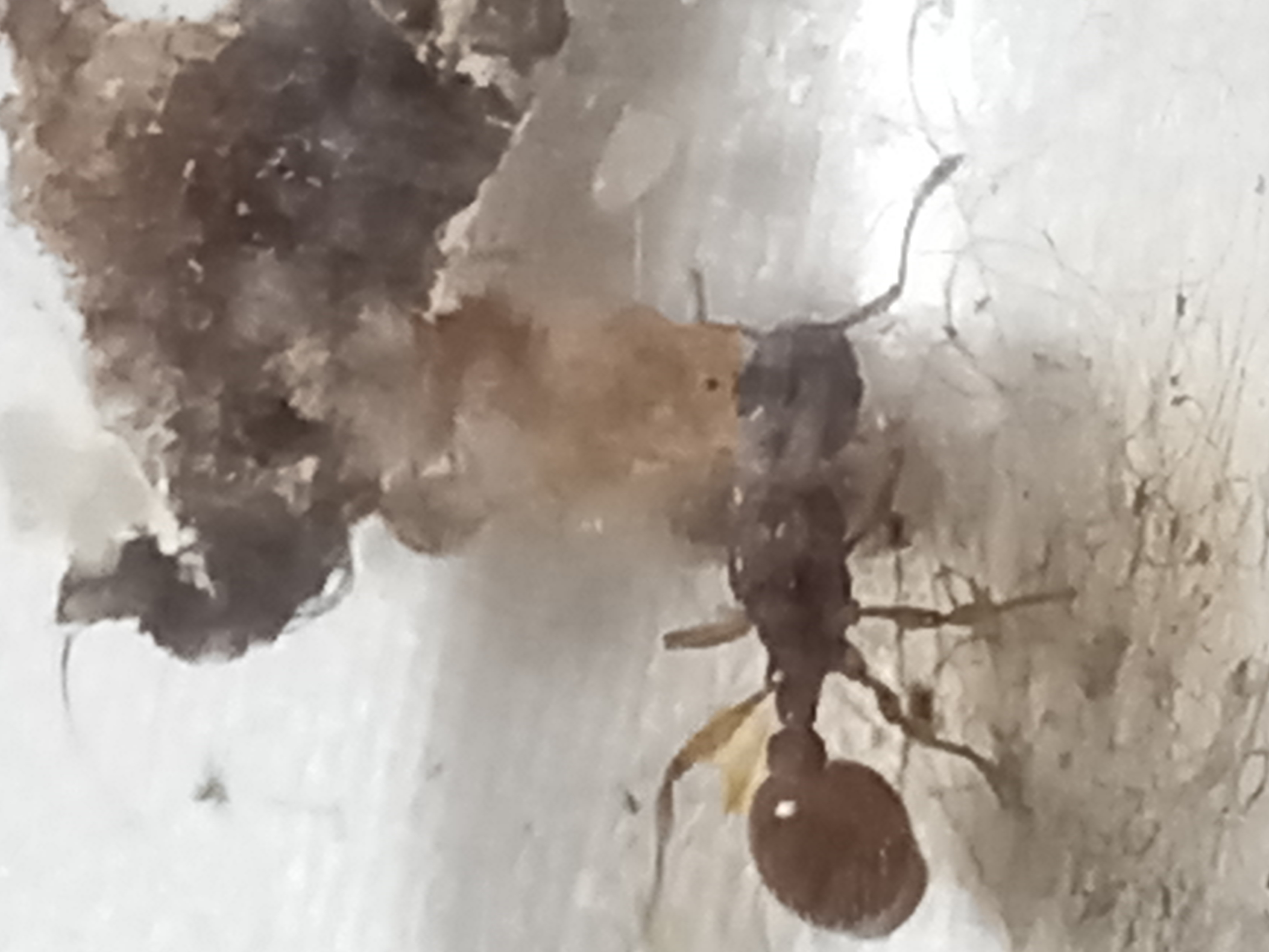 Außerdem habe ich seit 2-3 Monaten eine Feuerameisenkönigin, welche jetzt ihre erste Arbeiterin hat.