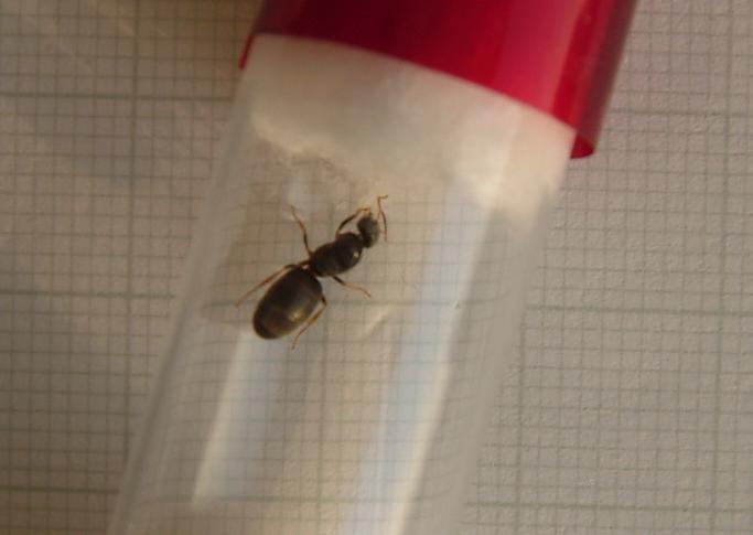 Habe heute einen letzten Versuch gestartet und Bilder gemacht - mehr will ich der Armen nicht antun, auch wenn es eine L.b. und damit eine Hausameise ist.