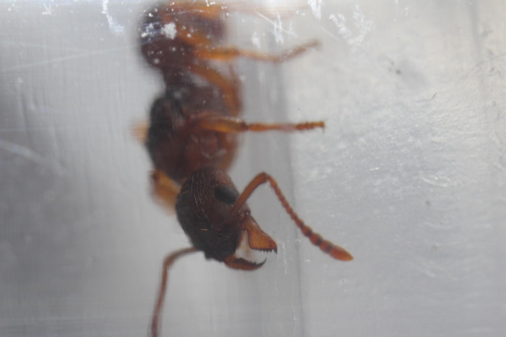 @fehlfarbe: Nicht Petiolus, sondern Postpetiolus Letzteres ist das zweite Glied, also das Kennzeichen für eine Myrmicinae; die anderen Unterfamilien in M. Europa haben alle nur ein Stielchenglied. Man bräuchte noch sehr gute Bilder aus Frontalansicht vom Scapusansatz; je nach Krümmung kann man das Tier zumindest weiter eingrenzen.