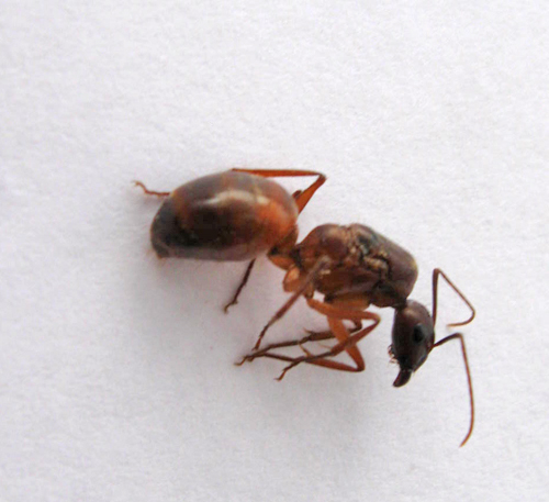 Und jene Exemplare, die ich in unserer Garage gefunden habe (also die Knotenameisen, wie ich lernte - vielen Dank!), sind nicht mit "unserem" Kontaktgift in Berührung gekommen (überhaupt finde ich es erstaunlich, dass exakt zur selben Zeit mindestens 2 verschiedene Arten Flugtag hatten. Vielleicht hat dies neulich der erste Regen seit etlichen Monaten ausgelöst ... ?)