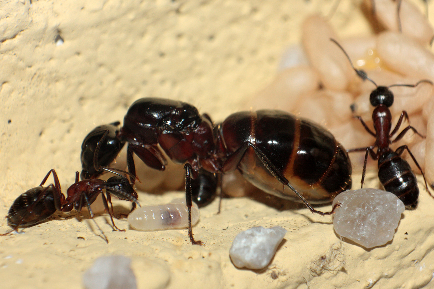 Königin ist, lese ich jetzt in Deinem Posting, dass es sich um eine Knotenameisenkönigin handelt. Dabei habe ich mich gerade eine halbe Stunde lang mit "Stielchen" beschäftigt; 2 Segmente kann ich bei meiner hübschen Dame allerdings nicht erkennen.