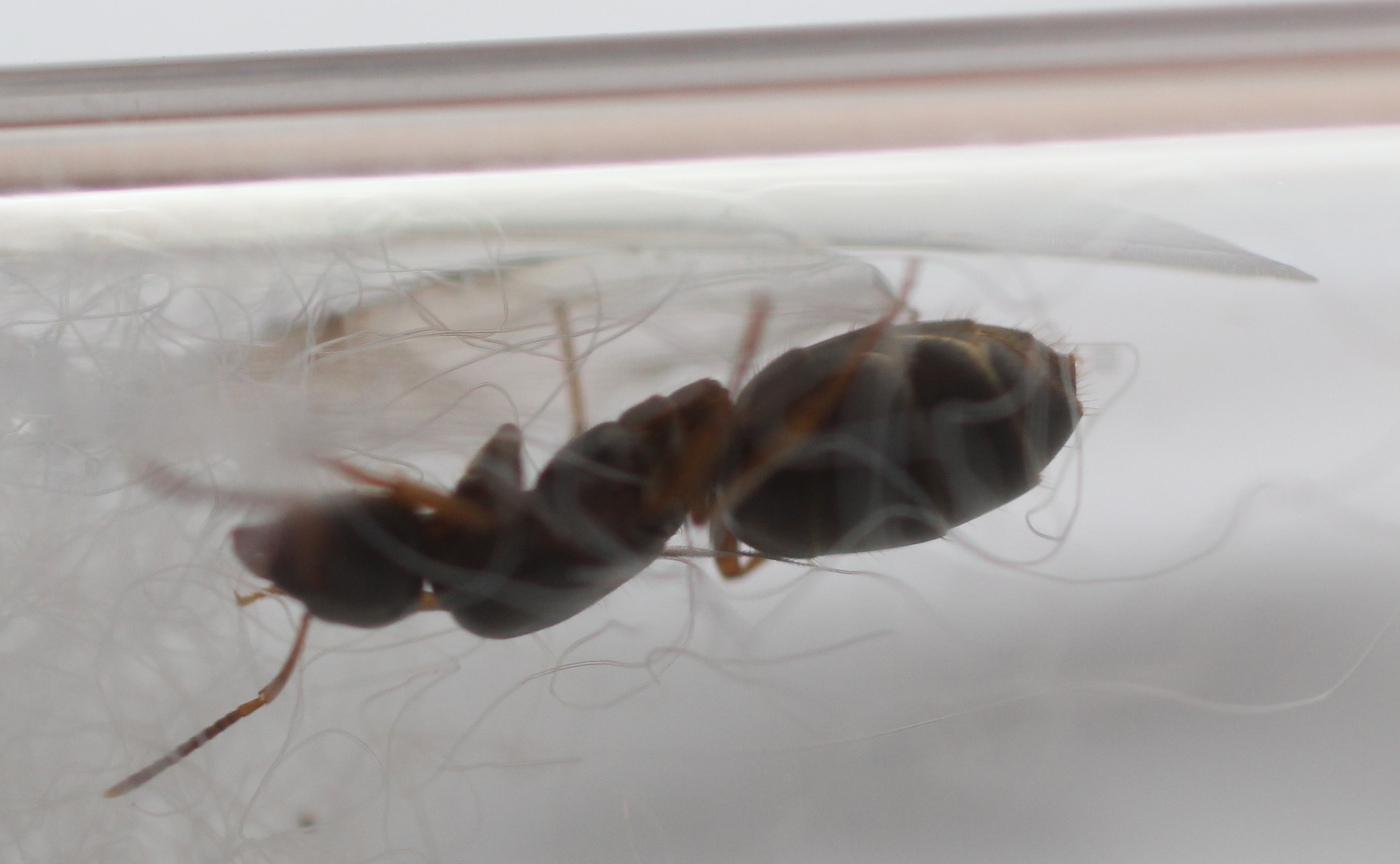 ; wg. der langen Flügel, schlanken Gestalt und des frühen Schwärmdatums würde ich auch hier auf Lasius brunneus tippen. Um das sicher(er) sagen zu können bräuchten wir aber noch scharfe Fotos aus Seitenansicht; Lasius niger ist es sehr sicher nicht, denn die Art schwärmt noch nicht und die Da die