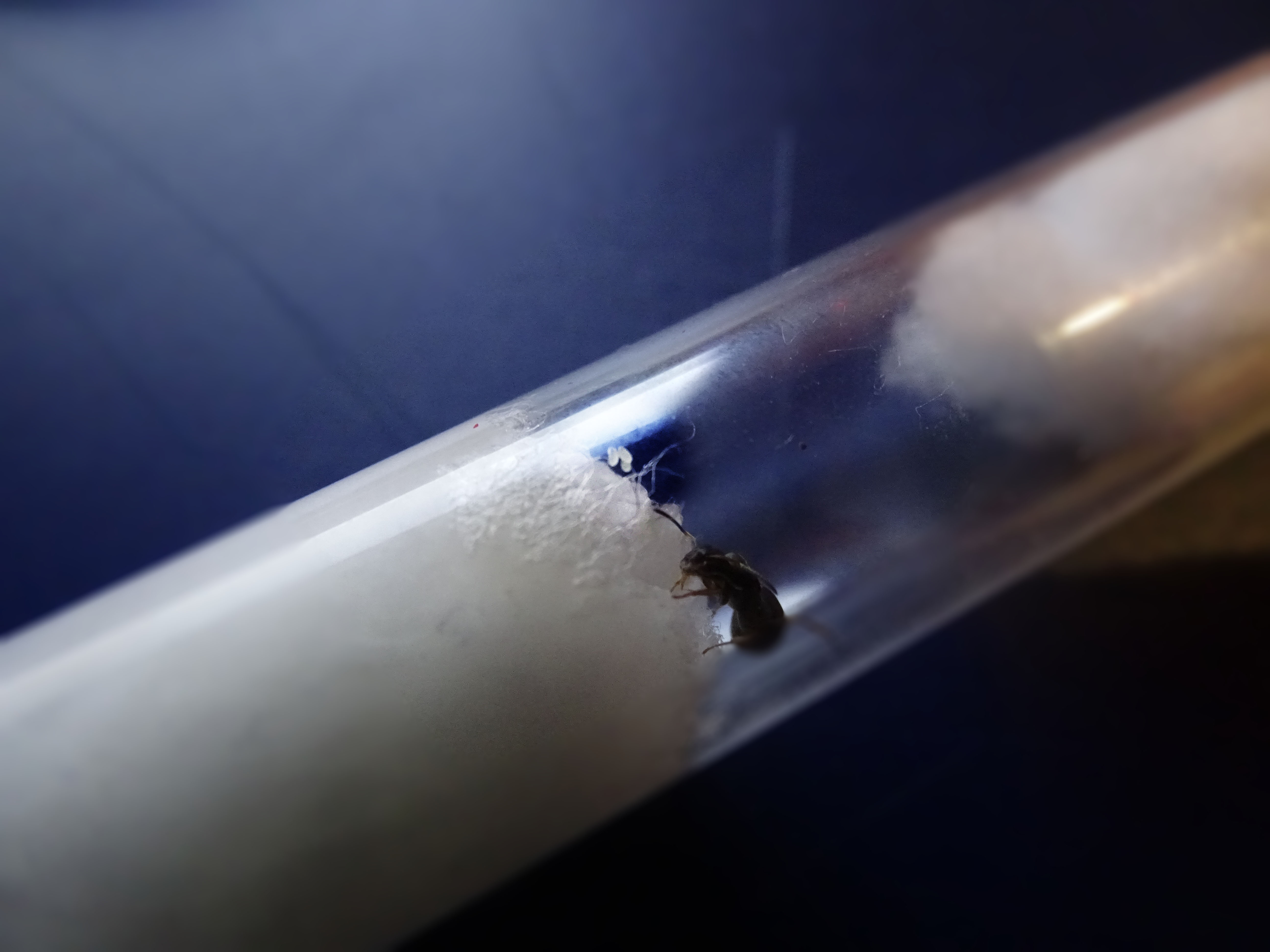 Ich habe sowieso nur noch eine Gyne. Das ist ja höchstwahrscheinlich Lasius brunneus, die sind monogyn, weswegen es ja ganz gut ist, dass ich nur noch eine habe. In ein präpariertes Reagenzglas habe ich schon, sie hat sogar schon Eier gelegt (achja und ich lagere sie in einer kleinen Kiste, damit sie es wie in der Natur schön dunkel hat):