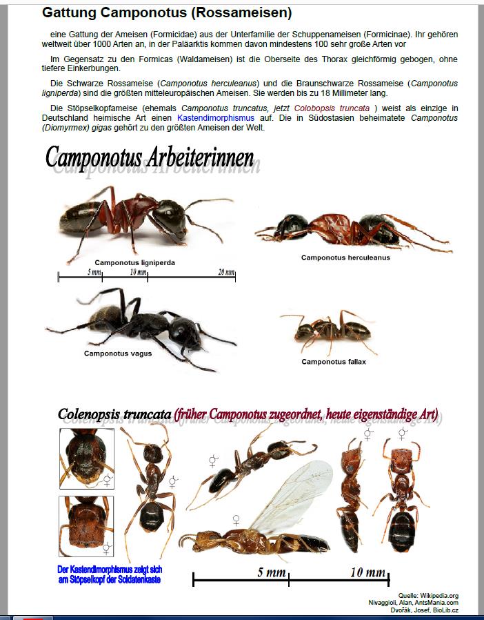 Abaton23 hat geschrieben:Danke fĂŒr den Hinweis der Colobopsis truncata. Ich habe den Schreibfehler korrigiert. Ich habe sie bei den Camponotus aufgefĂŒhrt, da sie dieser Gattung nach-wie-vor in Wikipedia zueordnet wird.