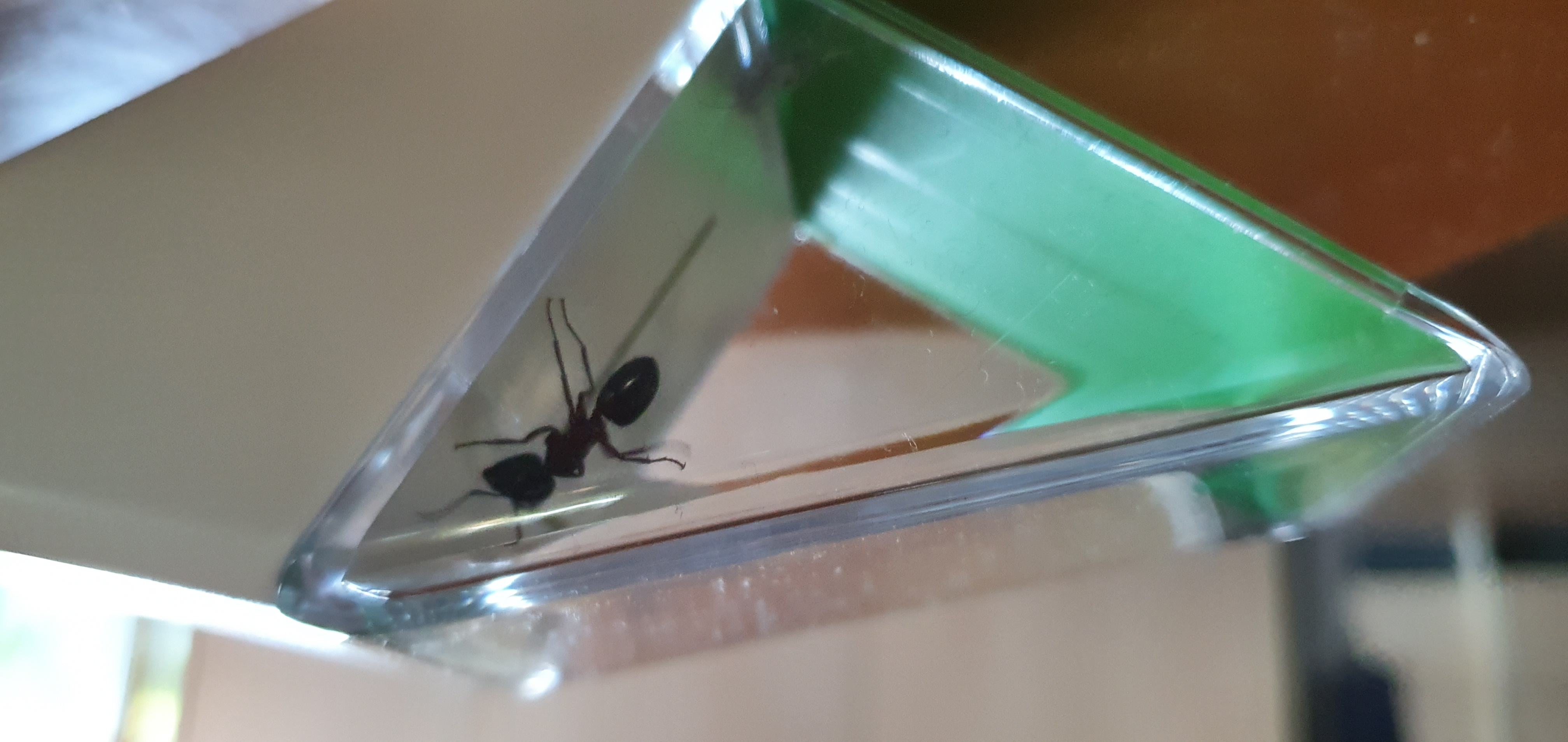 ich hab jetzt in den letzten Tagen immer mal wieder Ameisen gefunden und auch nach drauĂen befördert. Gerade eben habe ich 2 unter meinem Fenster beobachtet und hatte vor sie mit Zuckerwasser zu fĂŒttern, um das Nest zu lokalisieren. Eine der Ameisen hab ich direkt aufgescheut und sie ist direkt unter dem Fenster zwischen Korkboden und Wand verschwunden die andere wurde nicht aufgeschreckt, aber ist nach 2 - 3 Minuten mit einem Fetzen Papier an der selben Stelle verschwunden.