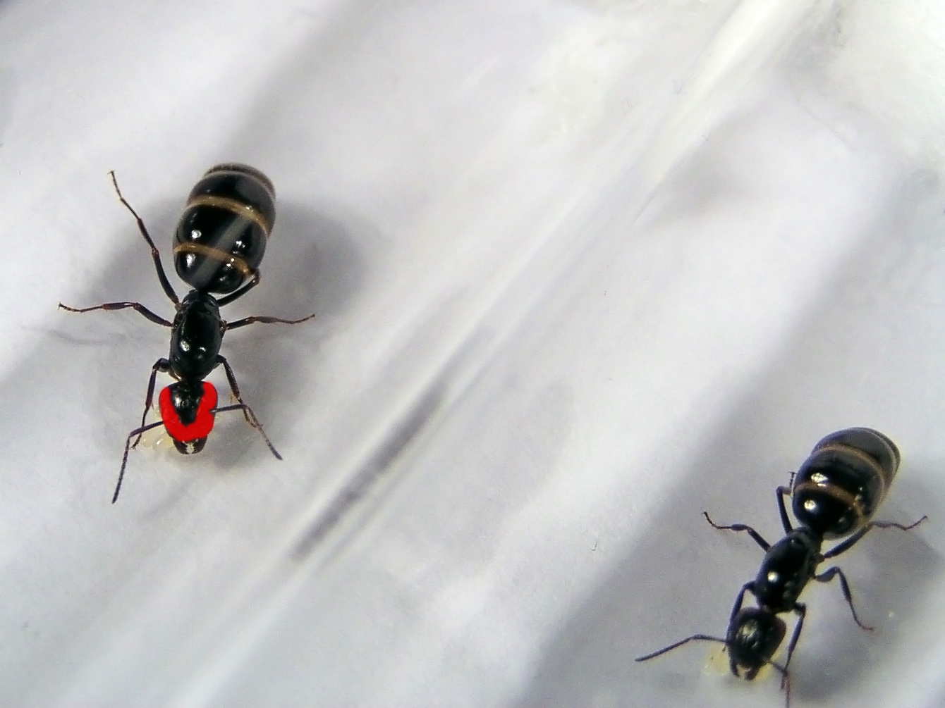 (roter Kopf; schwarze Beine; ca. 1,2cm; spitzer