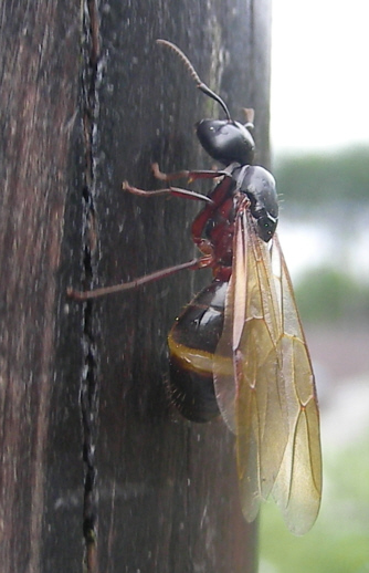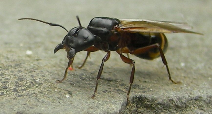 P.S.: Ich fand im vorigen Jahr eine sterbendeKönigin von Camponotus ligniperda, die hatte einen auffallenden LÀngsstreifen am Hinterleib, etwa zwischen Tergiten und Sterniten.