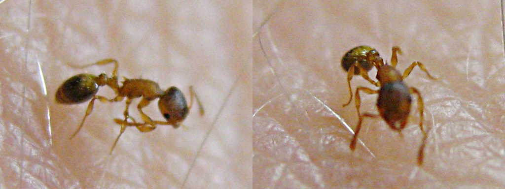 Danke fĂŒr die Hilfe! Ich hatte fĂŒr mich Temnothorax cf. nylanderi nur ausgeschlossen, weil die laut Ameisenwiki "einheitlich rötlich-braun" sein sollen und meine sind ja dunkelbraun/hellbraun/gold/schwarz/gold - also nicht einheitlich. Aber vielleicht sind die Angaben dort auch nur zu ungenau.
