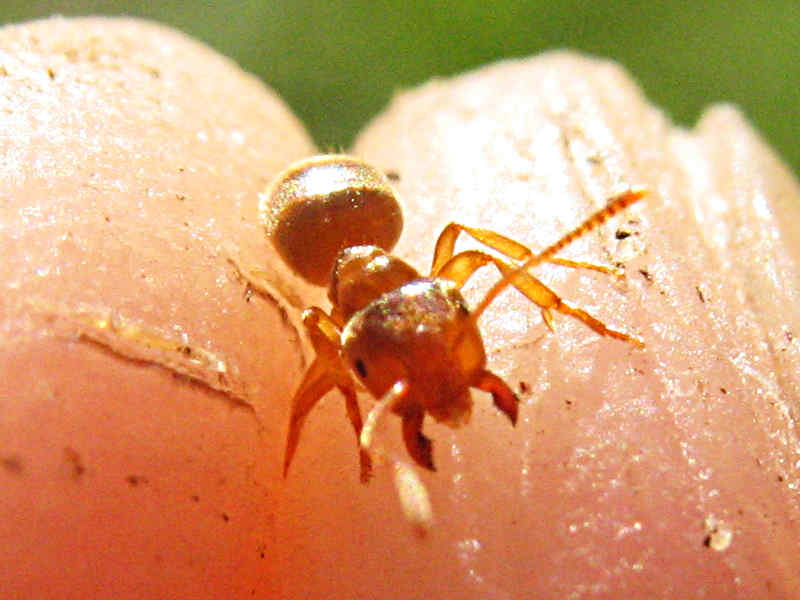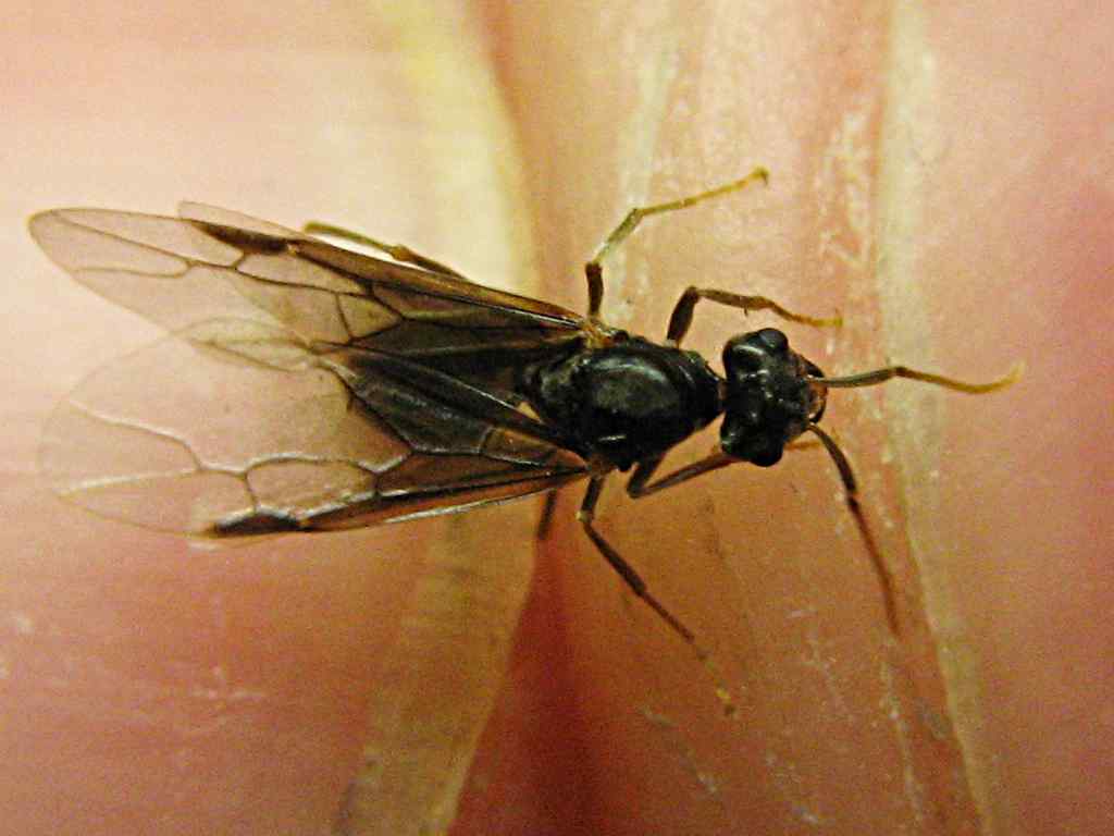Gestern abend sind mir noch fünf weitere Exemplare zugeflogen, also ingesamt acht. Heute morgen hab ich vor dem Fenster nachgesehen und konnte etwa 80 tote Tiere entdecken, zu 2/3 sind sie ertrunken, für den Rest ist die Todesursache unbekannt. Dieses Massenauftreten deutet vielleicht doch auf Ameise und Schwarmflug hin.